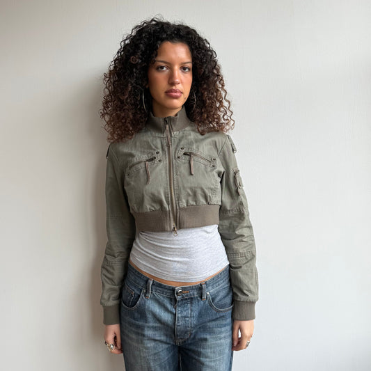 Khaki cropped cargo jacket - Size S/M