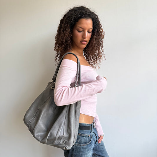 Sold outGrey leather slouchy bag
