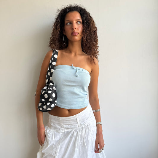 Sold outBlue polka dot beaded bag