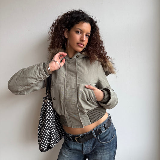 Sold outKhaki + orange polka dot bag