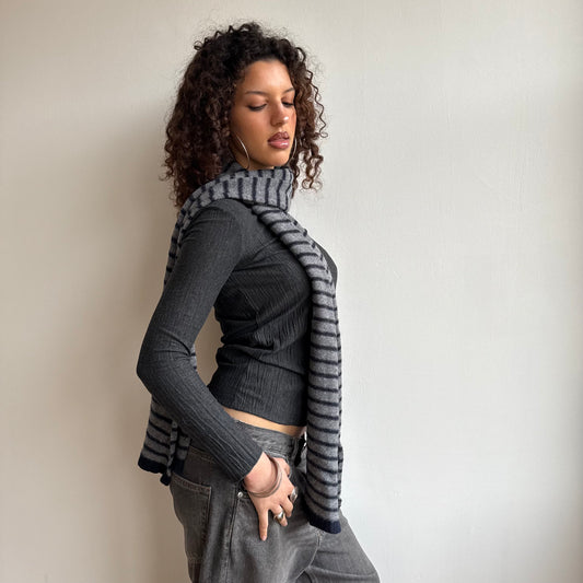 Sold outGrey and navy stripe scarf
