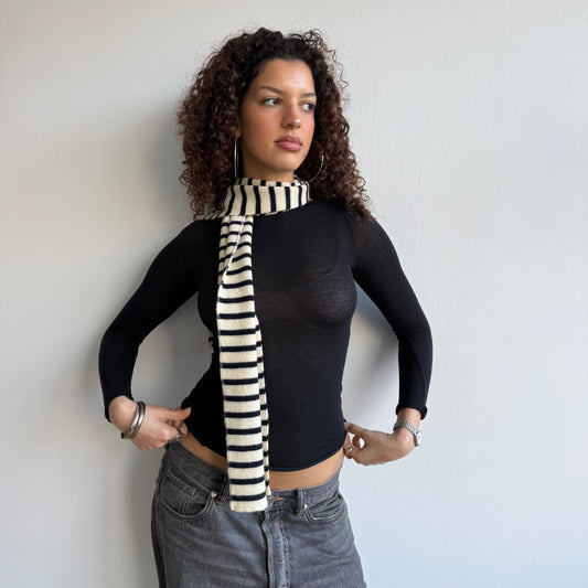 Sold outNavy + cream striped scarf