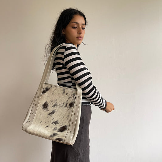 Sold outWhite leather cowhide bag