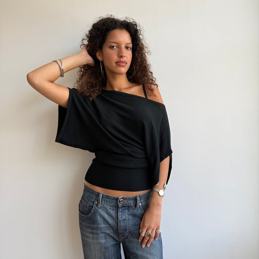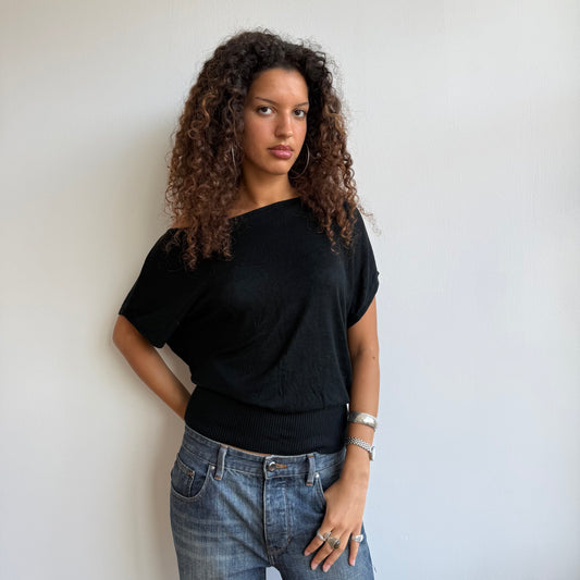 Black short sleeve slouchy knit - Size M-L