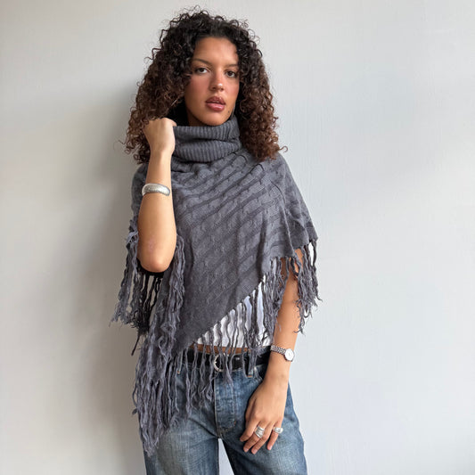 Charcoal grey tassel poncho - One Size