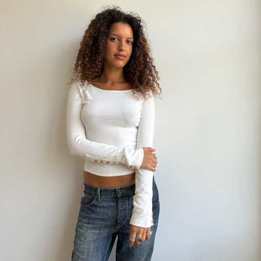 Sold outWhite 3/4 sleeve button knit -Size S