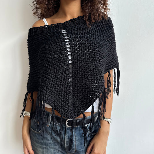Black tassel poncho - One Size