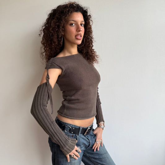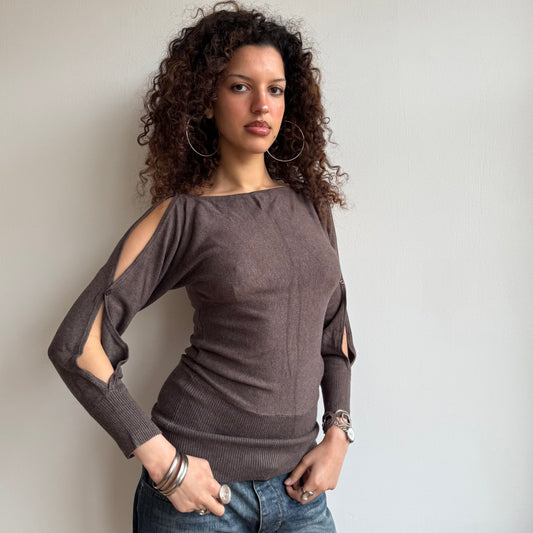 Sold outBrown cold shoulder knit - Size S