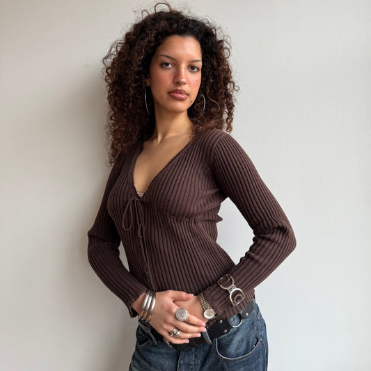 Sold outBrown tie-front Cardi - Size M
