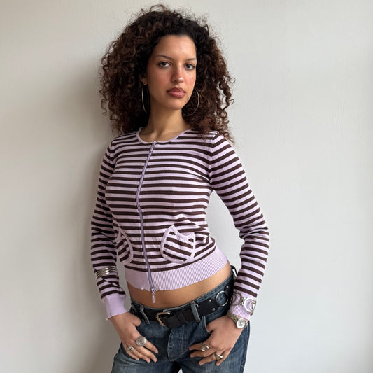 Sold outPink striped zip knit - Size S
