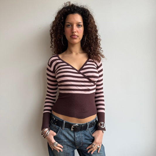 Pink and brown ballet wrap knit - Size S