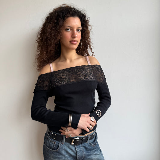 Sold outBlack lace Bardot knit - Size S