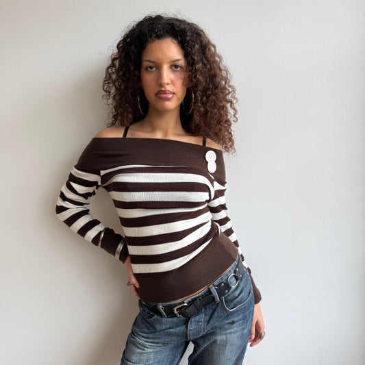 Sold outBrown stripe bardot knit - Size S