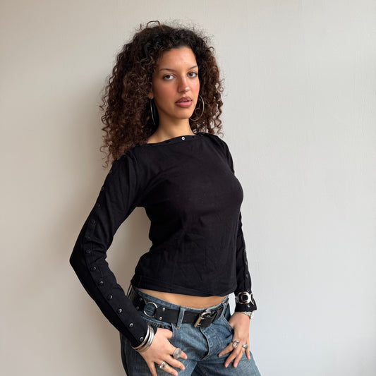 Sold outBlack button boatneck knit - Size S