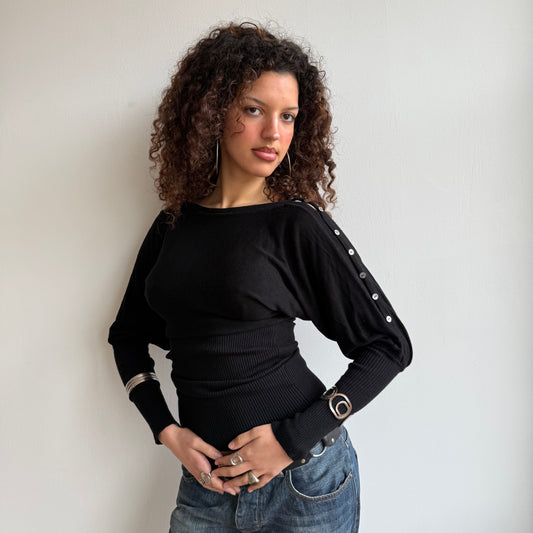 Black slouchy button arm knit - Size S