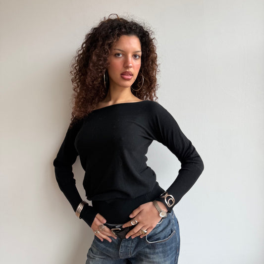 Black slouchy Bardot knit (1) - Size S/M