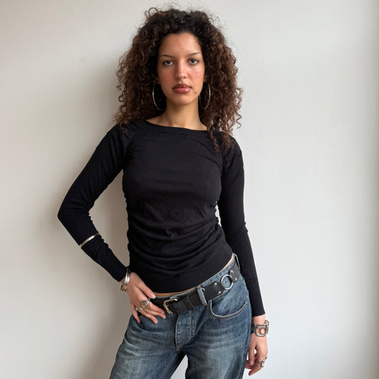 Sold outBlack ruched button knit - Size S