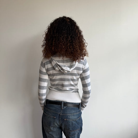 Grey + white striped knit hoodie - Size S