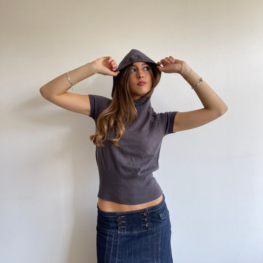 Grey short sleeve hooded knit - Size S