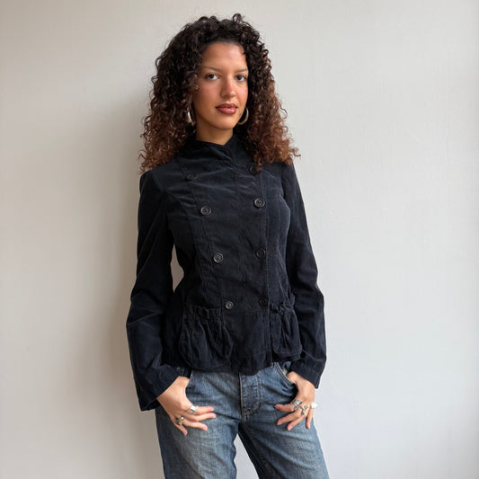 Black velours military peacoat - Size L