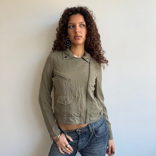 Khaki asymmetric moto jacket - Size S