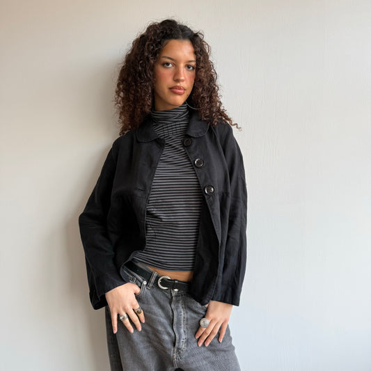 Sold outBlack linen peacoat - Size M