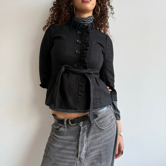 Black ruffle tie belt jacket - Size XS