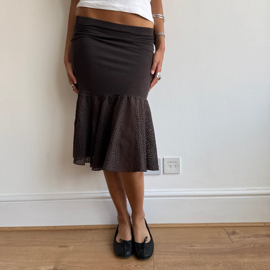Sold outBrown ruched side skirt - Size S