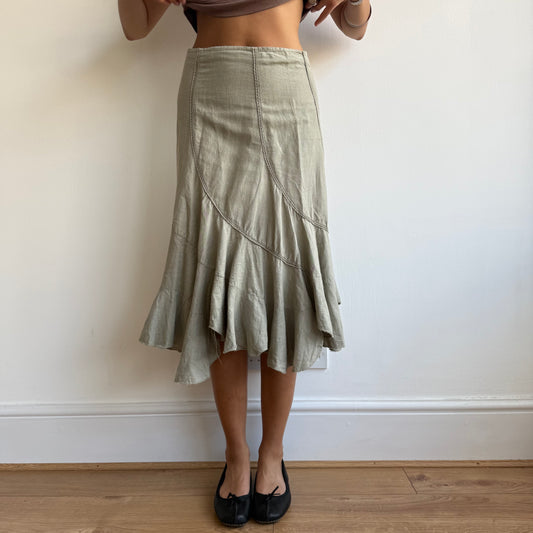 Sold outKhaki linen midi skirt - Size XS