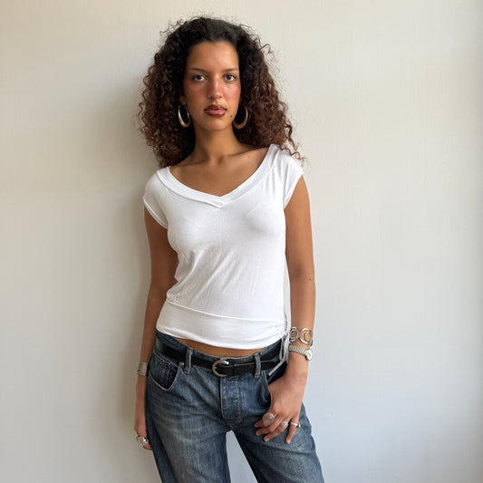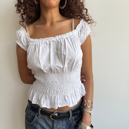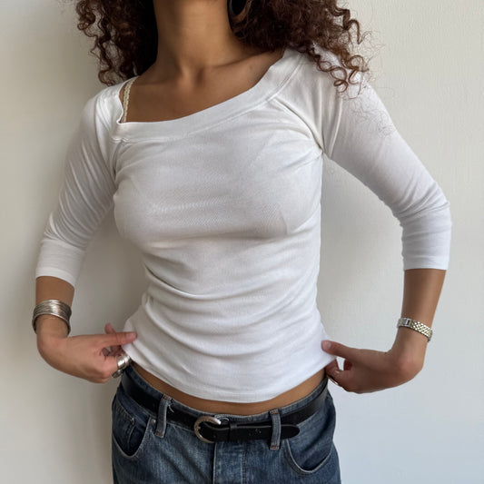 Sold outWhite bardot 3/4 sleeve top - Size S