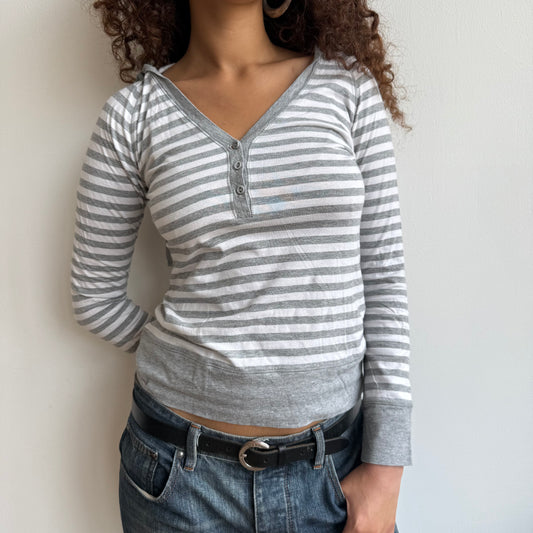 Sold outGrey stripe hooded top - Size S