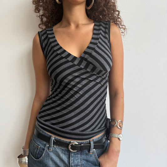 Black + grey stripe wrap top - Size M