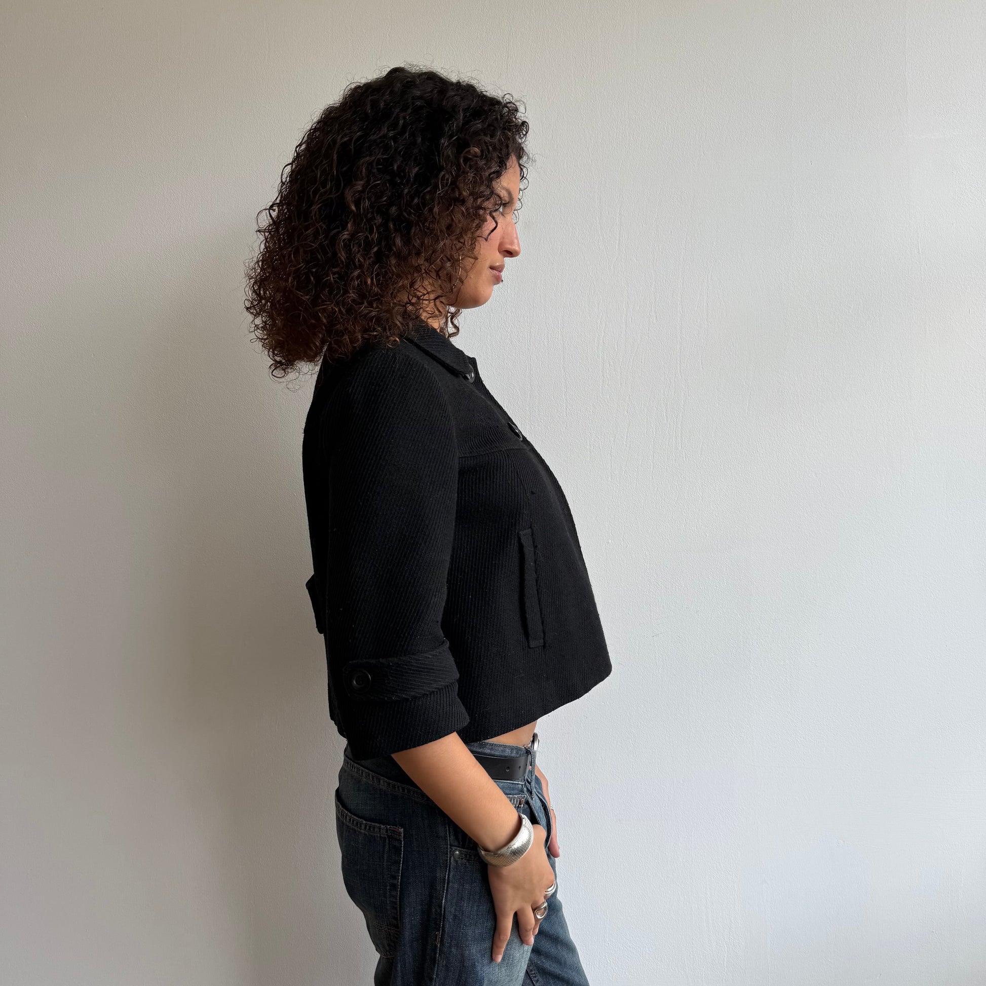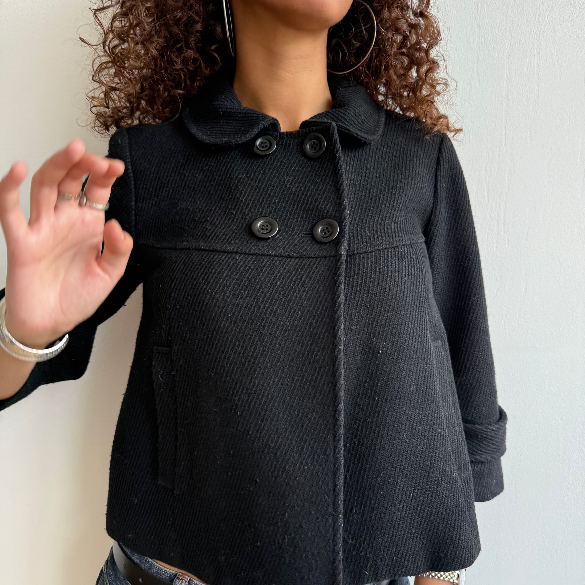 Black double breasted peacoat in a thick material with 3/4 sleeves