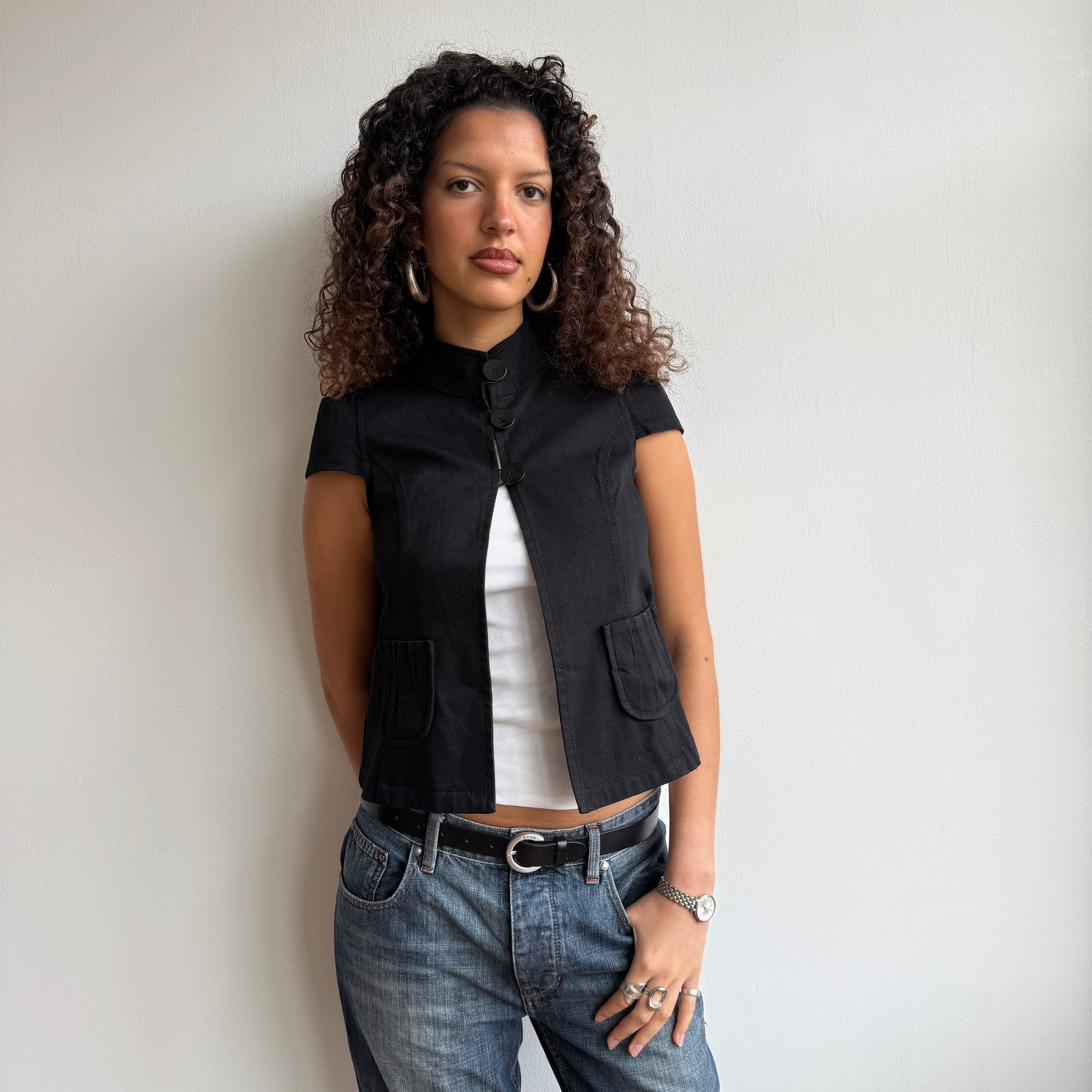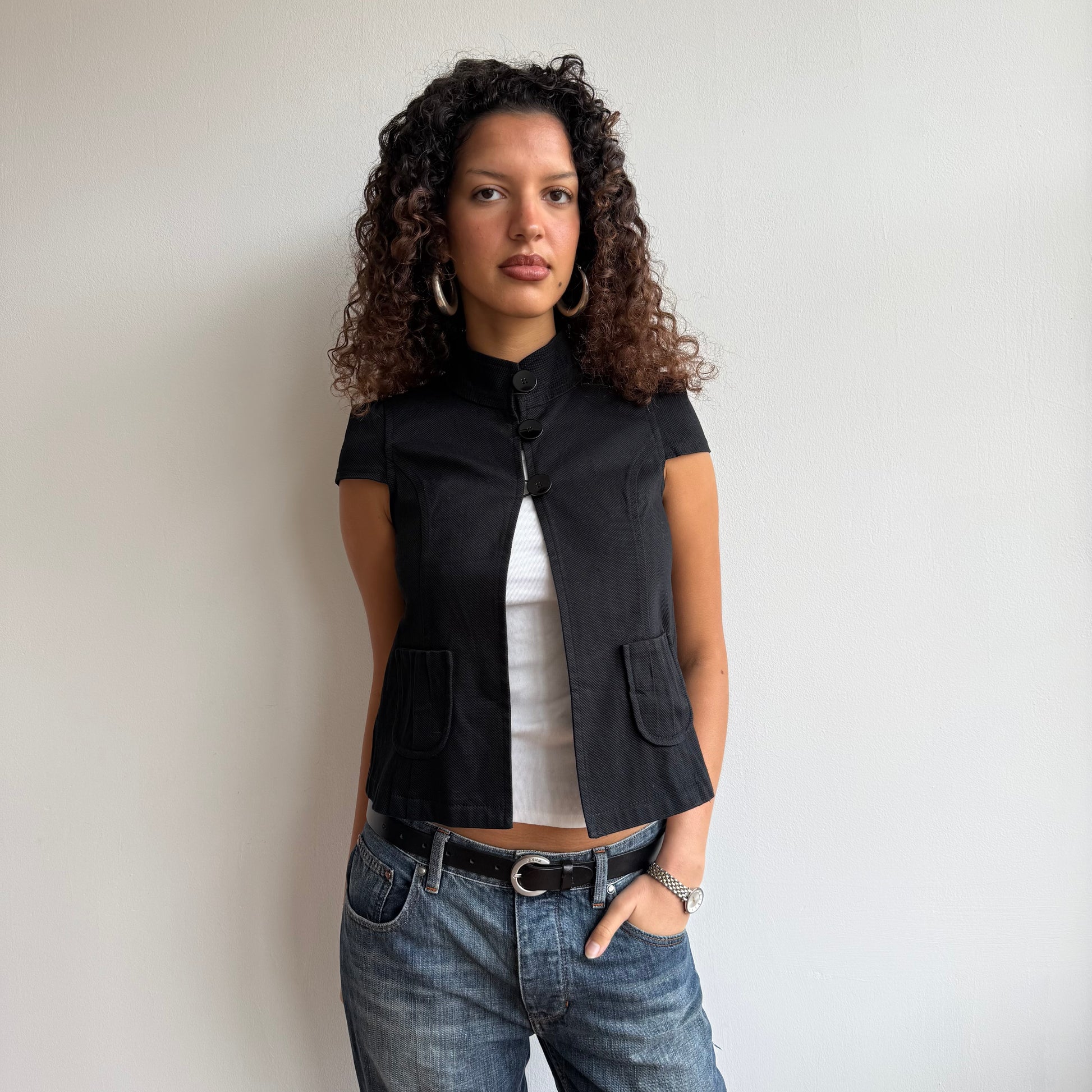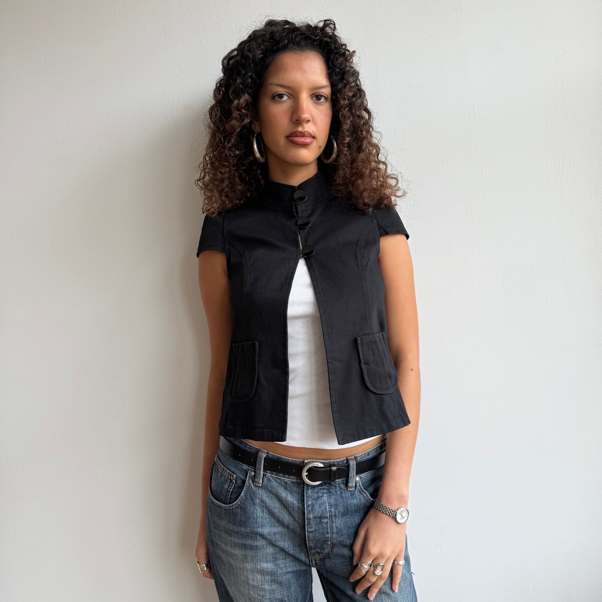 Black short sleeve peacoat with 3 buttons