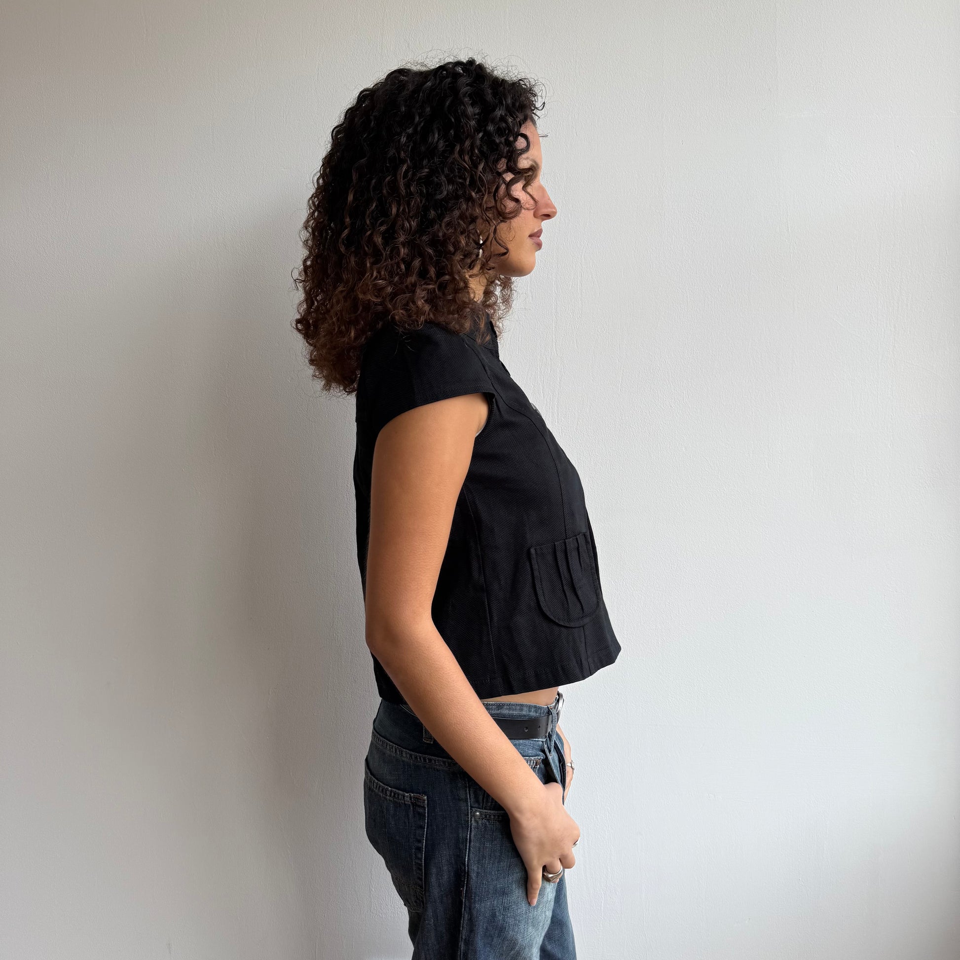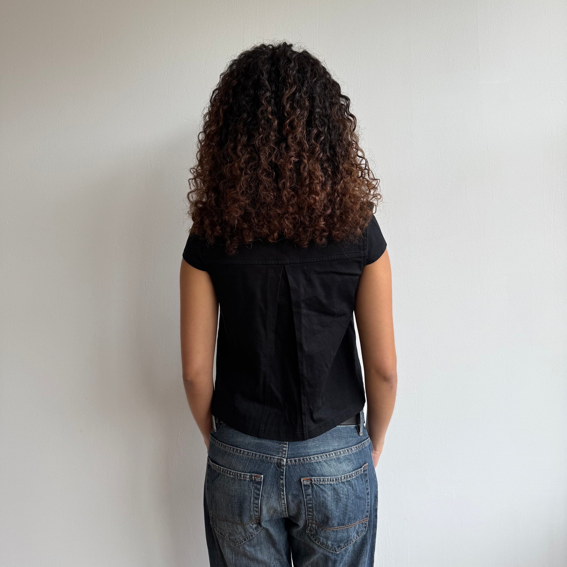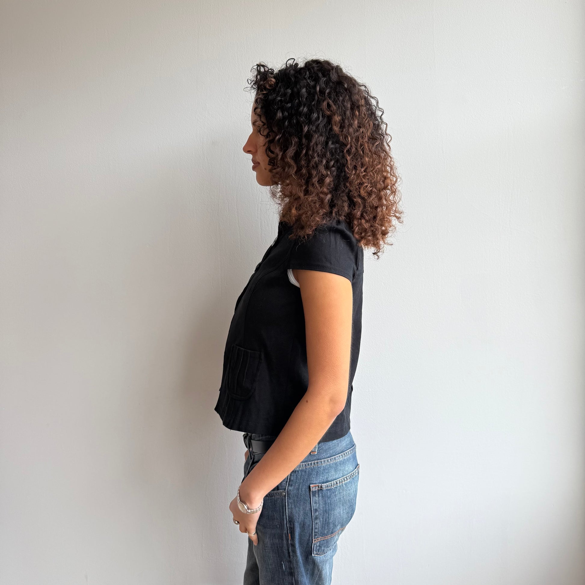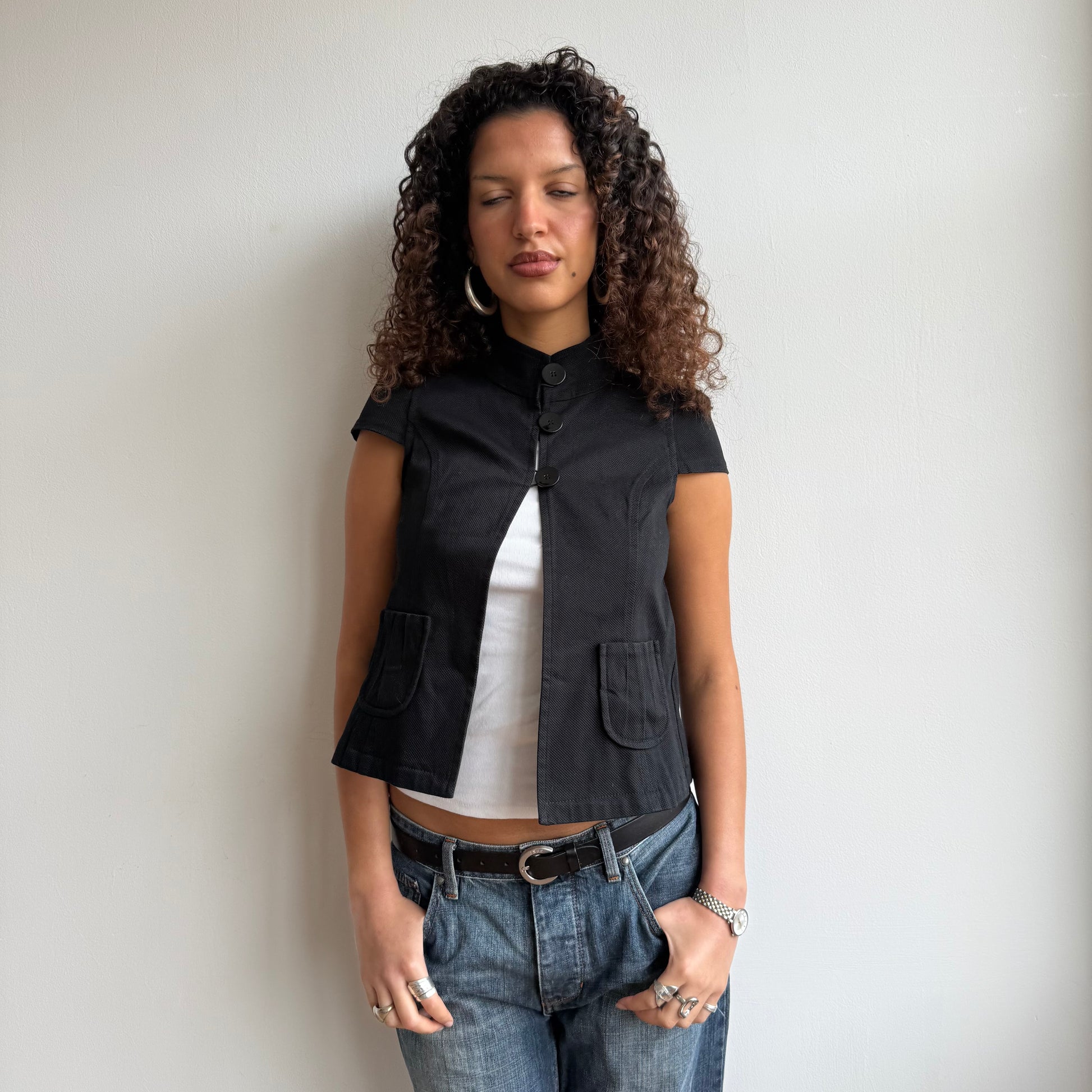 Black short sleeve peacoat with 3 buttons