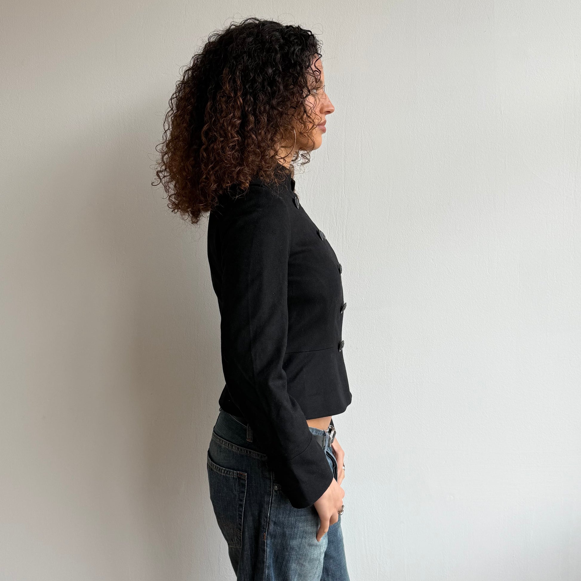 Black cashmere + wool military jacket - Size S