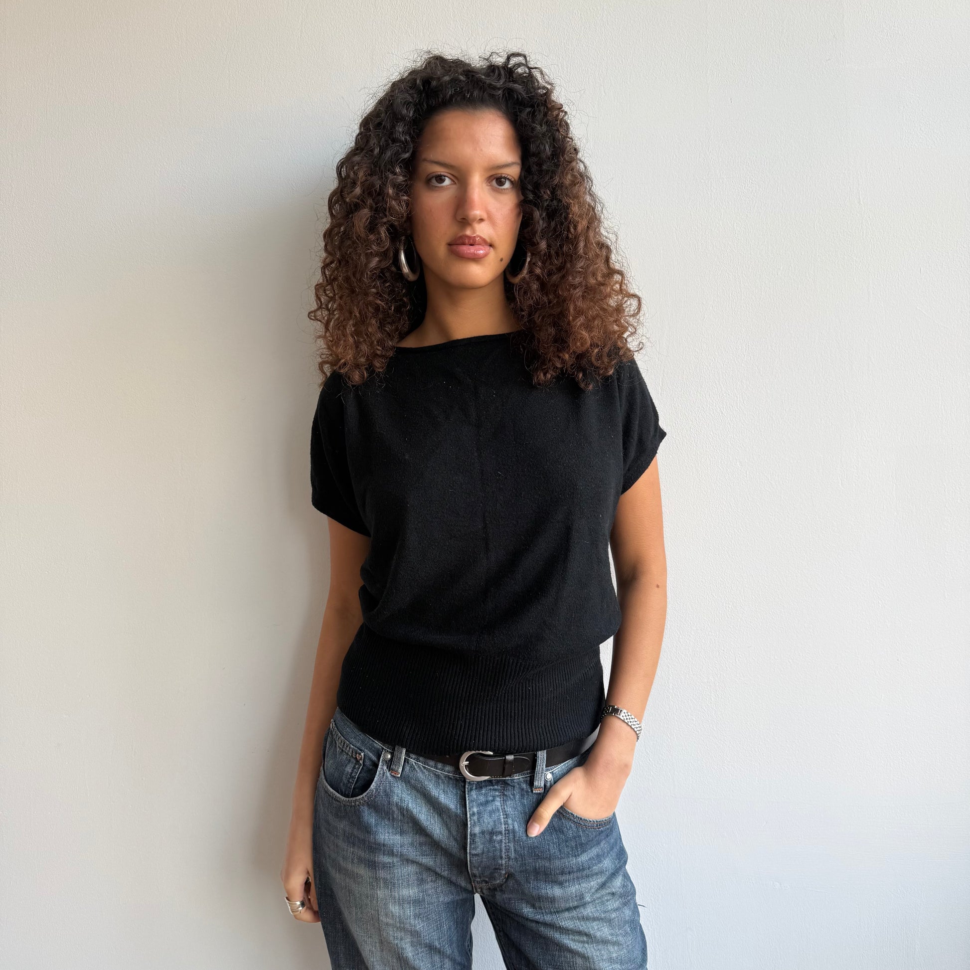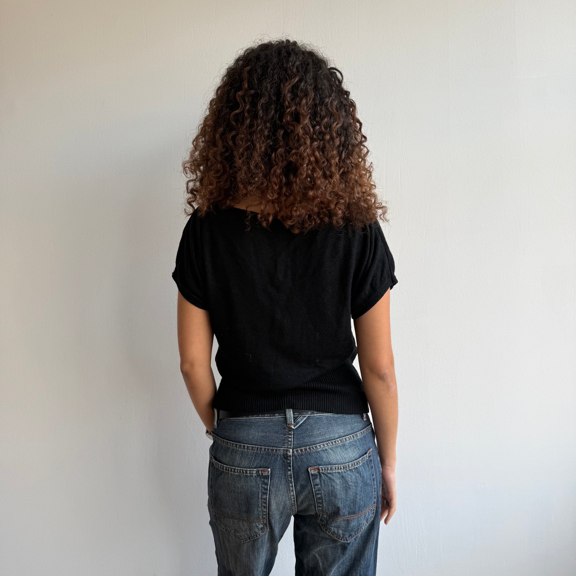 Slouchy black short sleeve knit