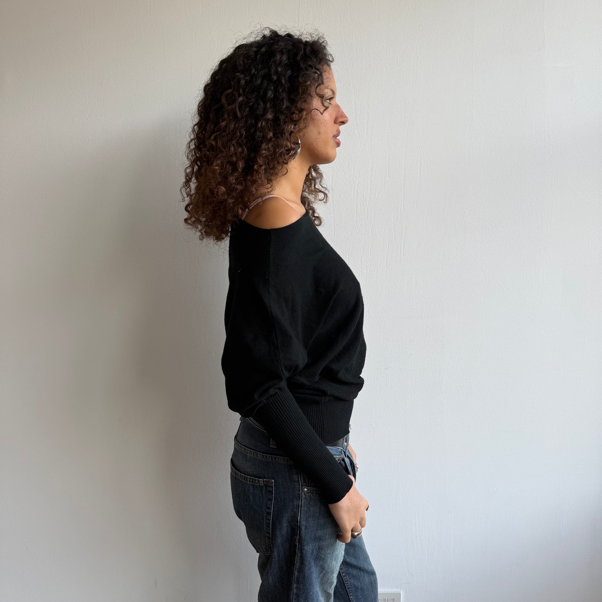 Black slouchy knit with buttons on the back