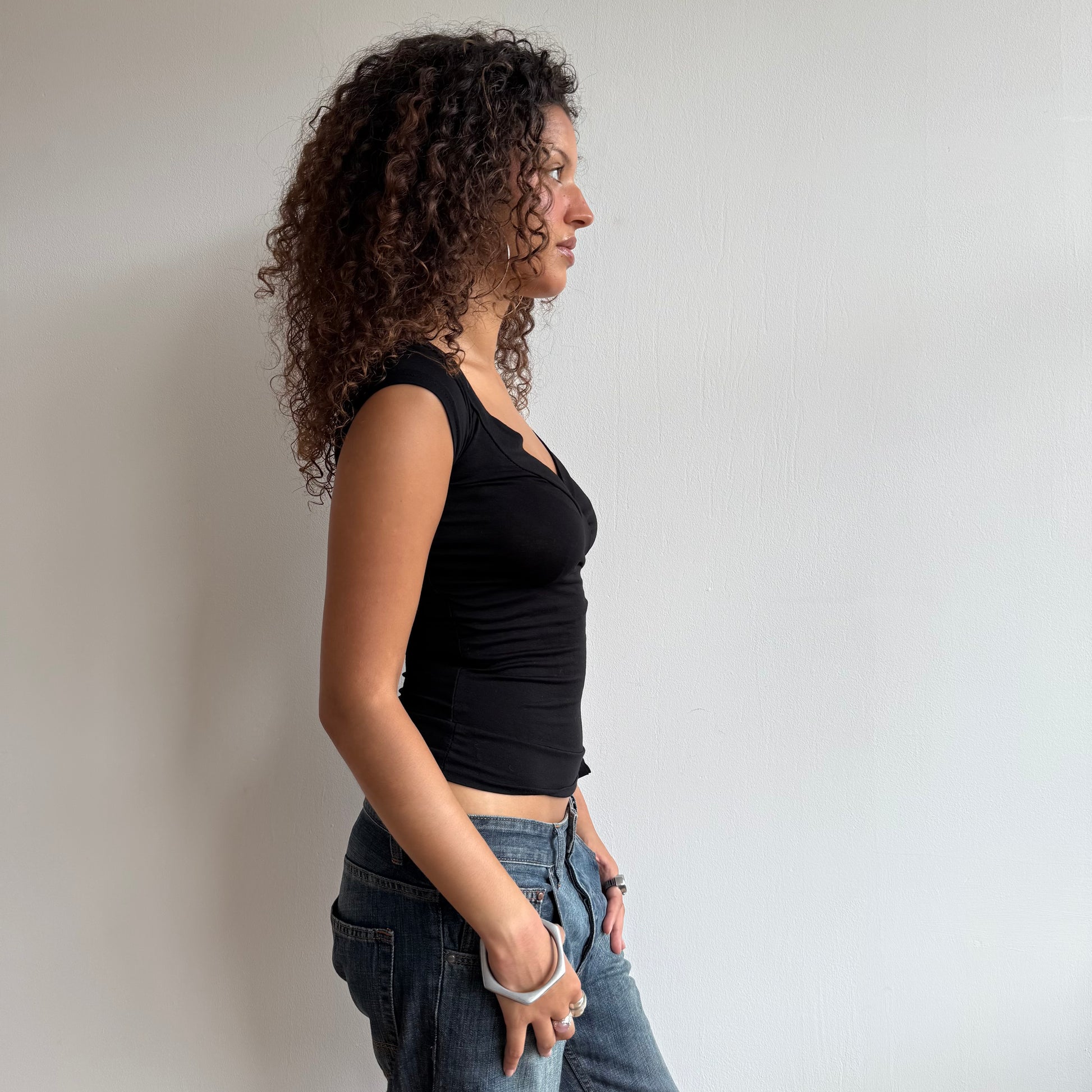 Black wrap tie side top - Size S