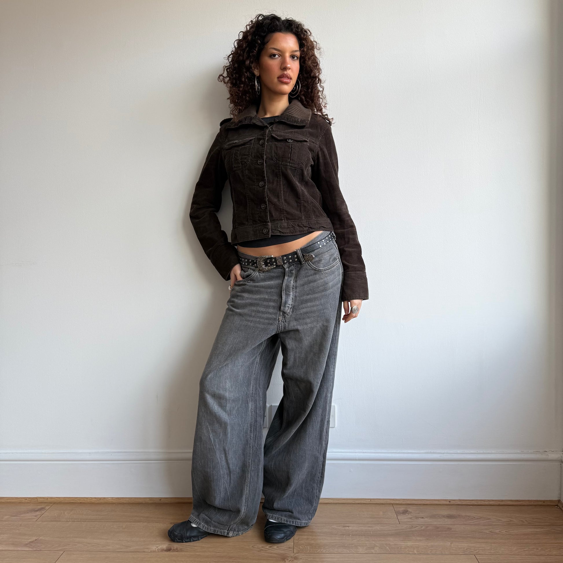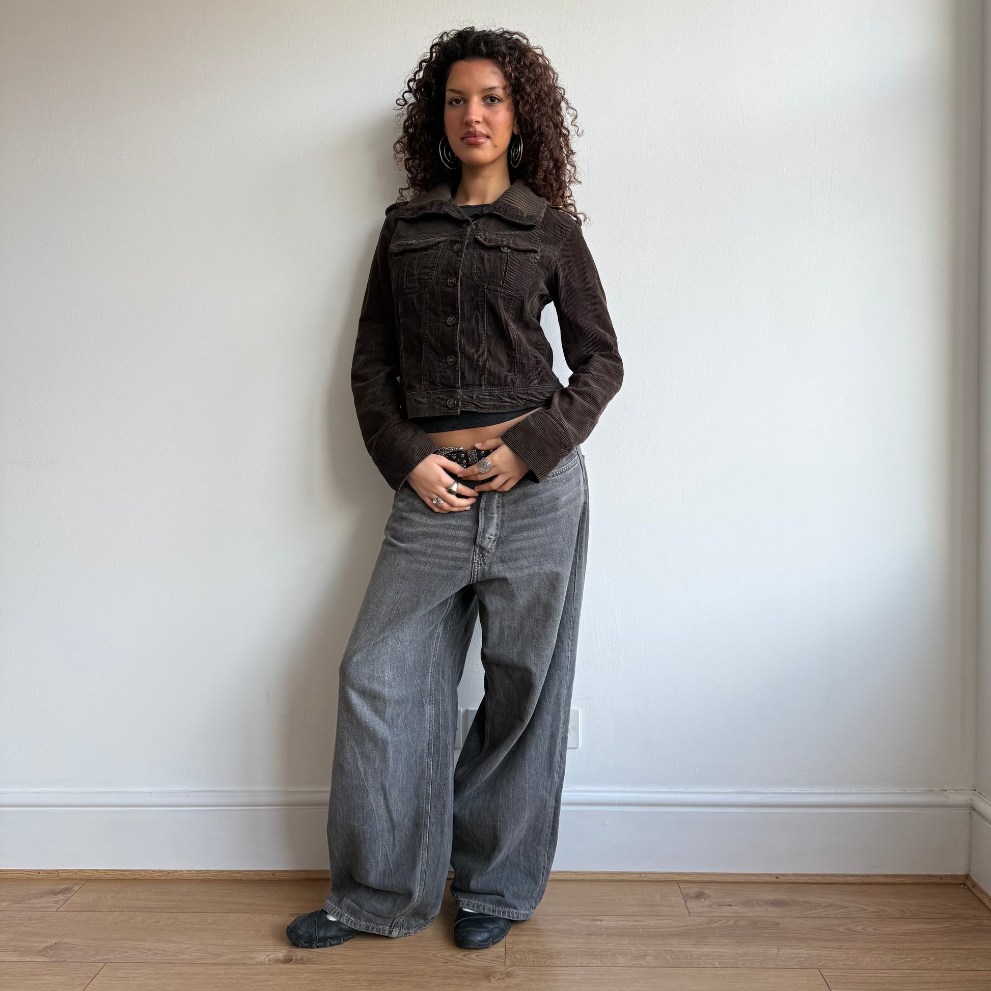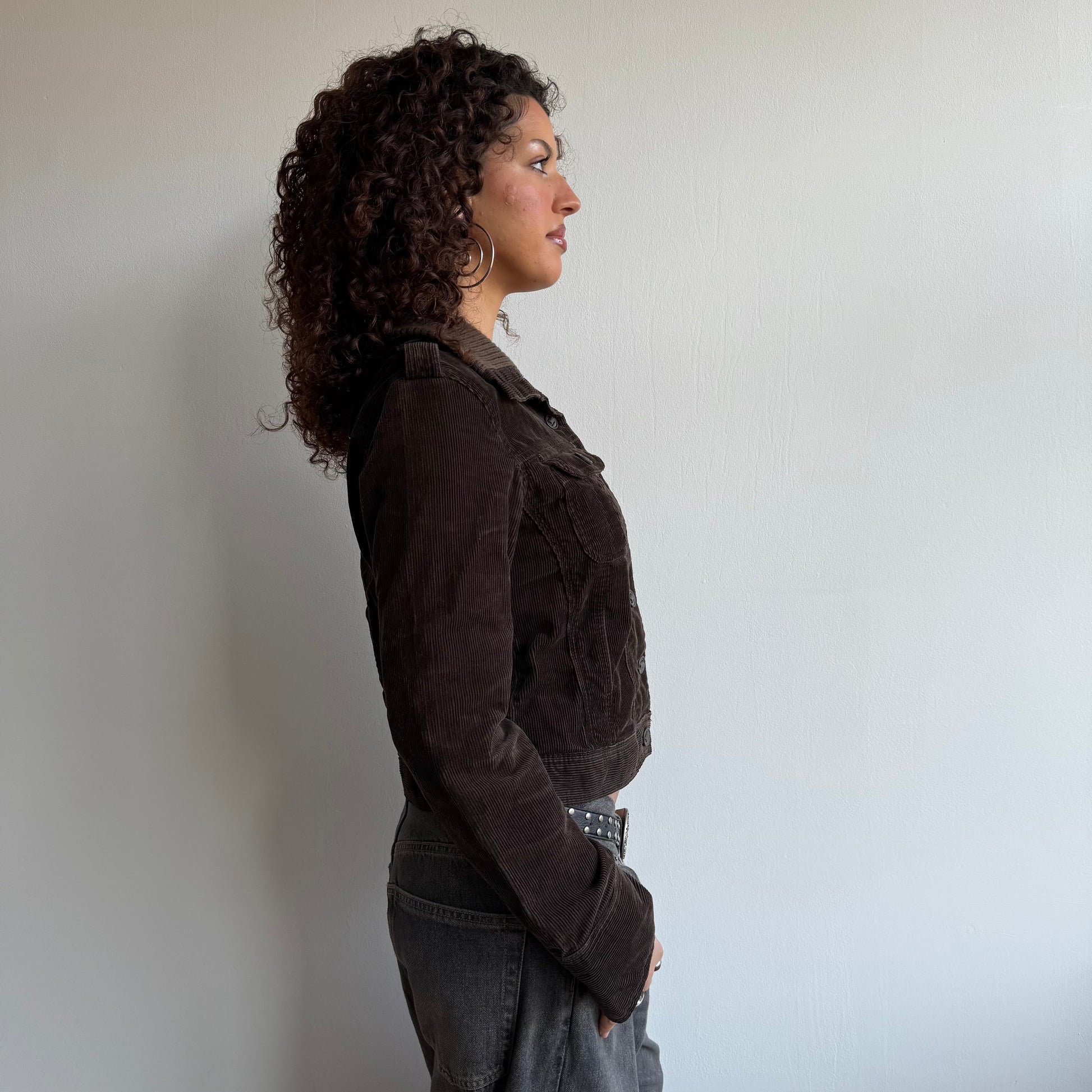 Chocolate. Rien corduroy cropped jacket with knit neck and button up front