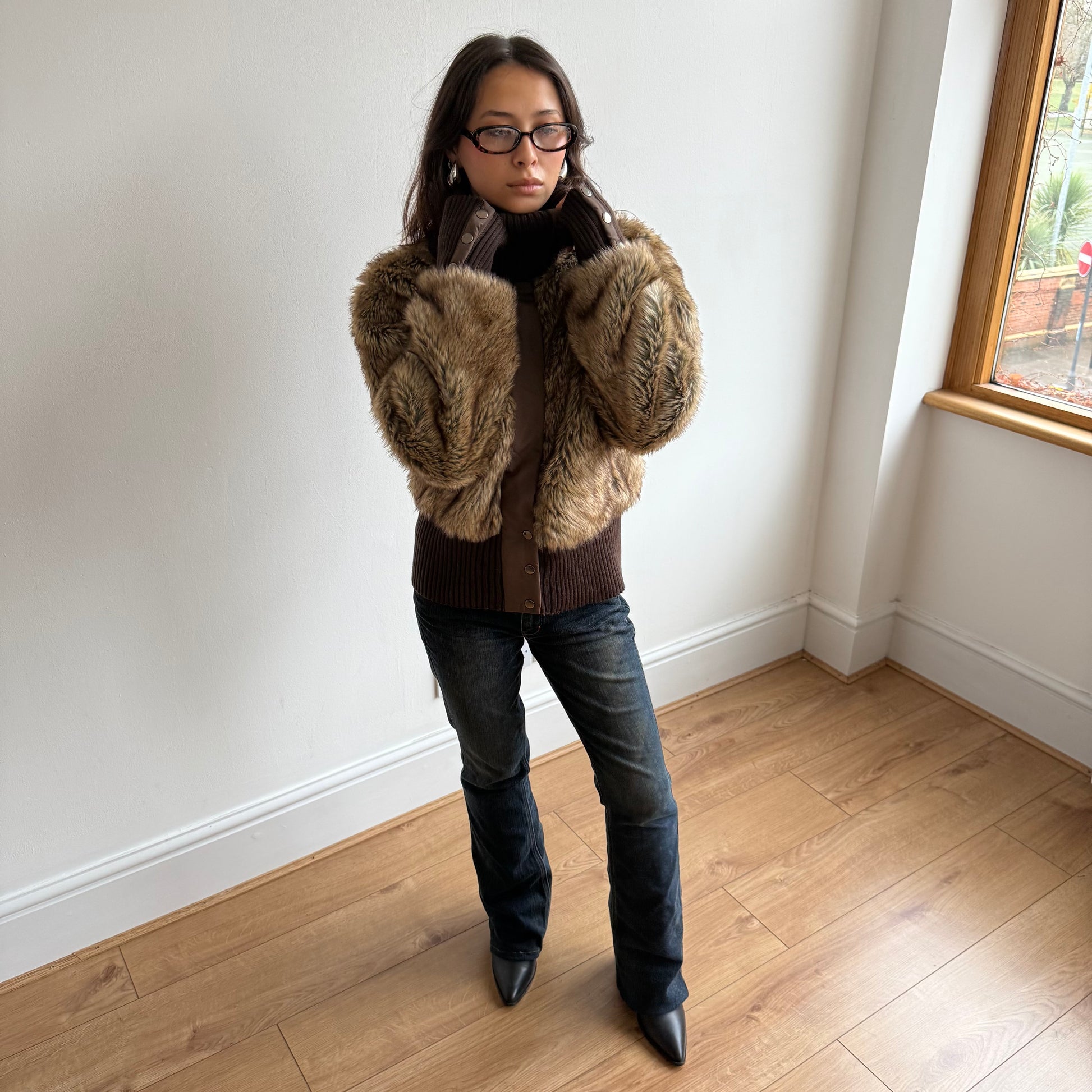 Brown fur bomber - Size L