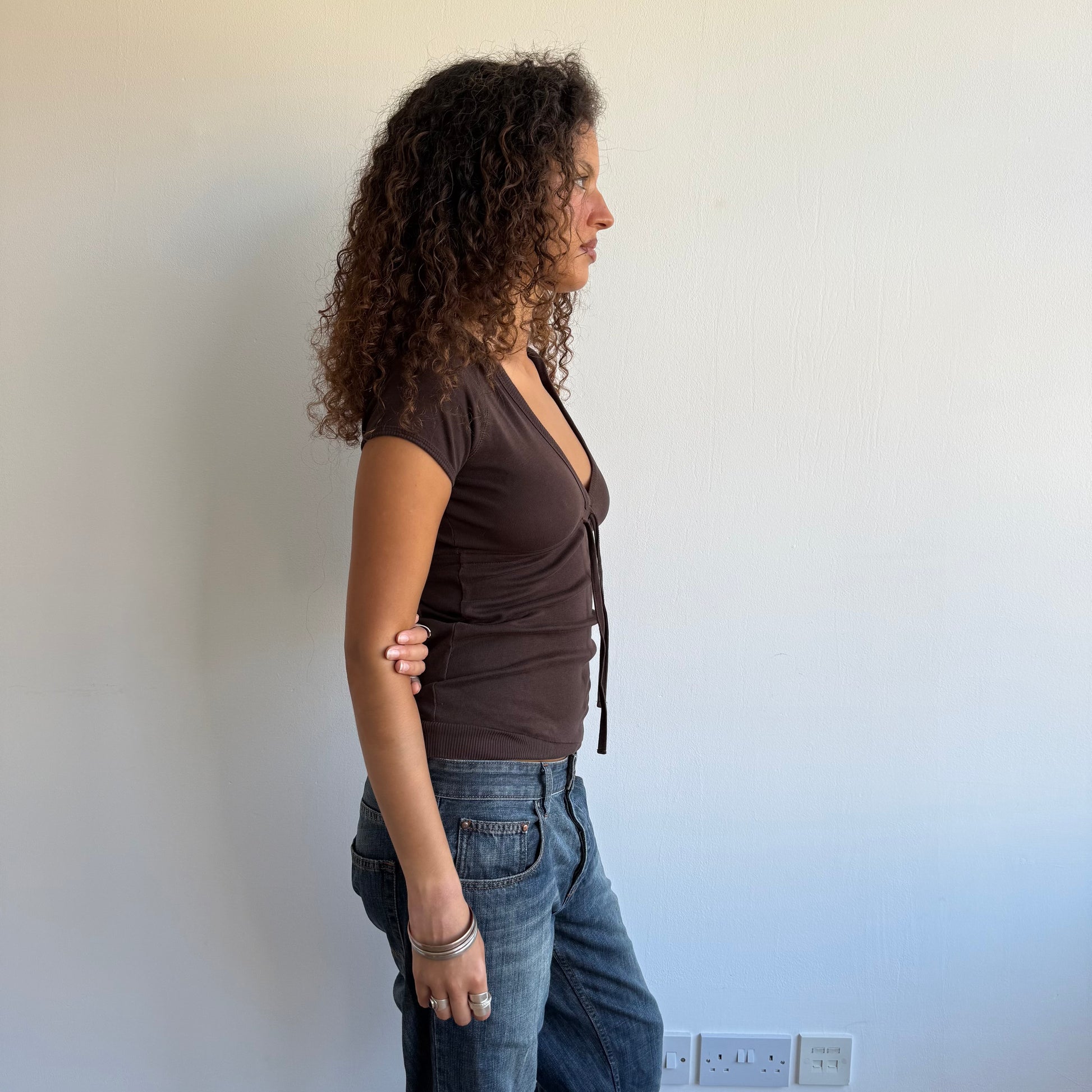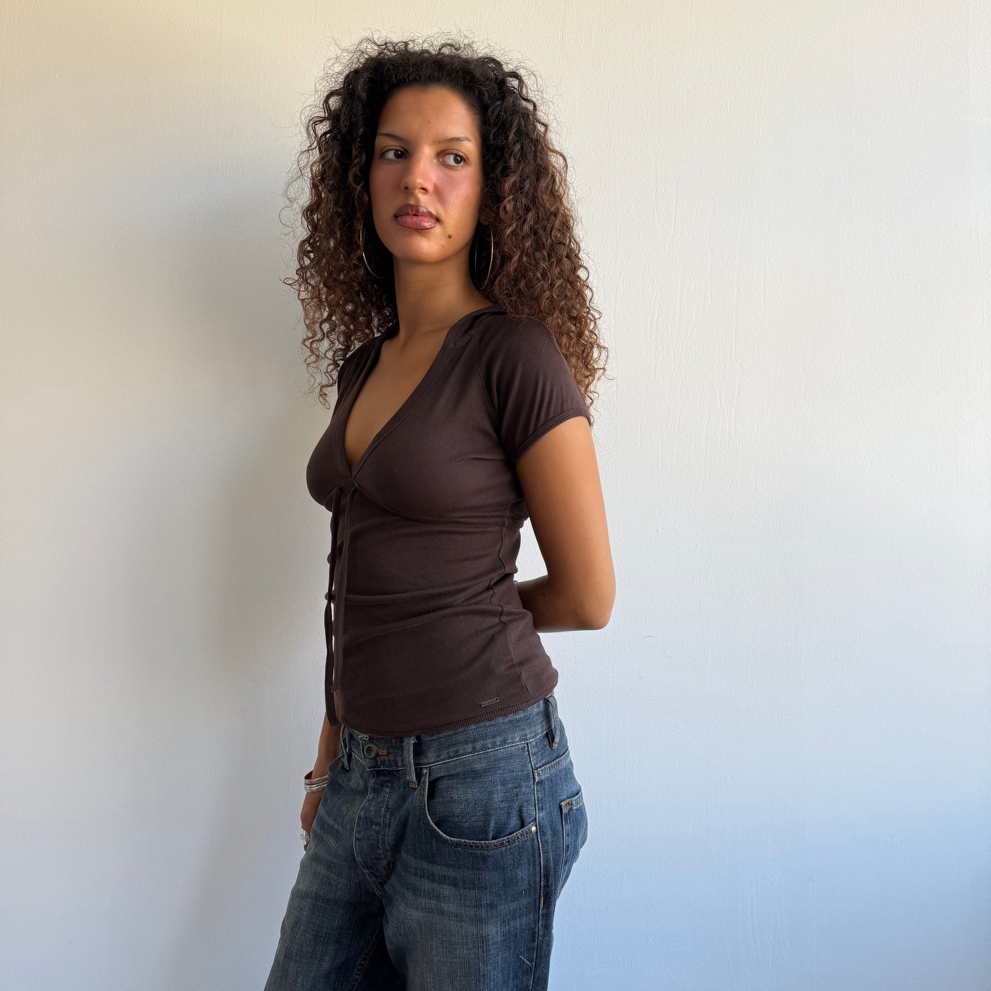 Brown short sleeve hooded t-shirt top