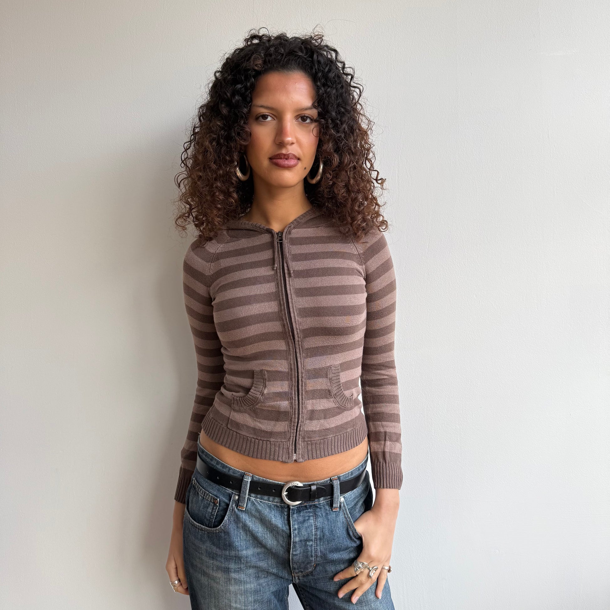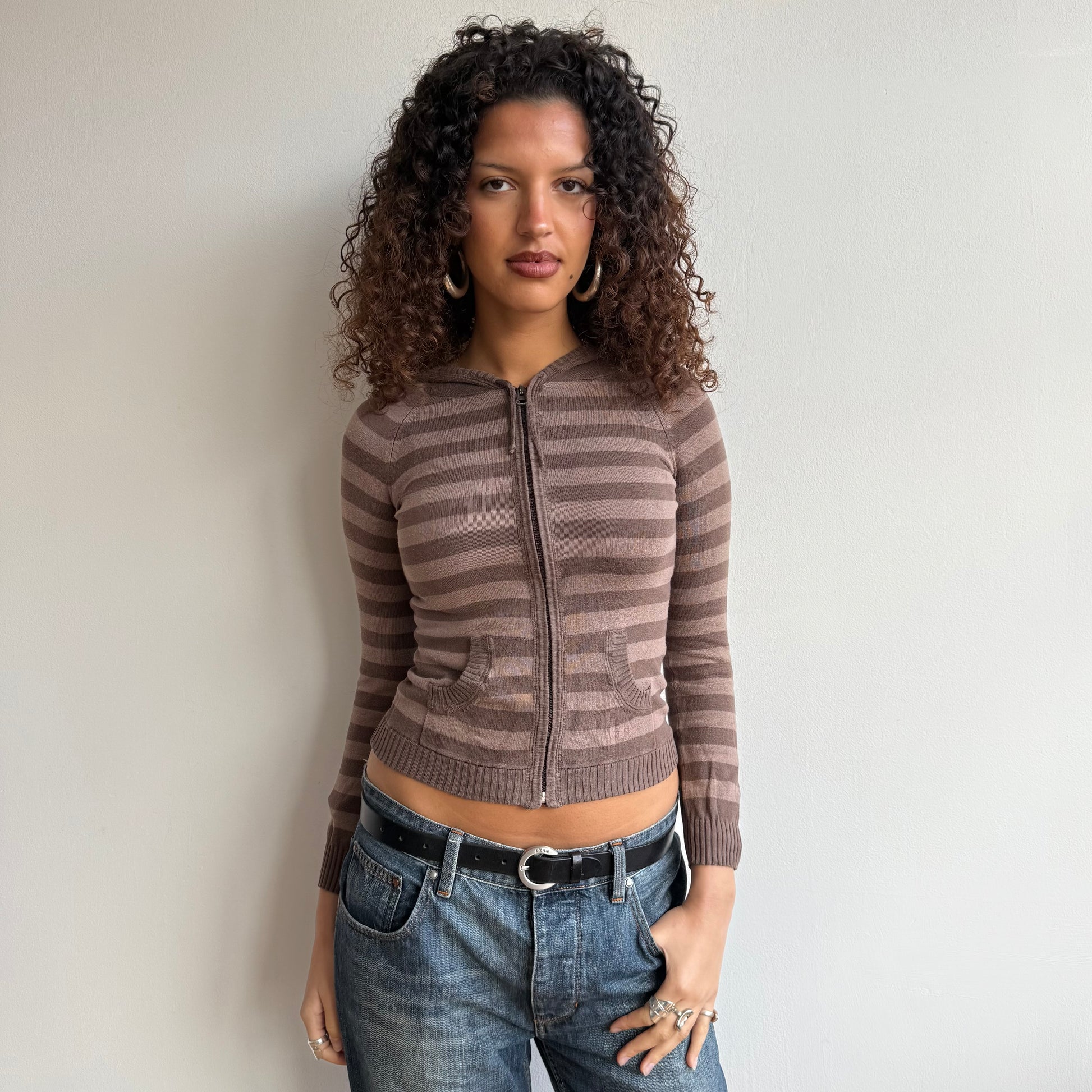 Brown striped knit hoodie - Size XS