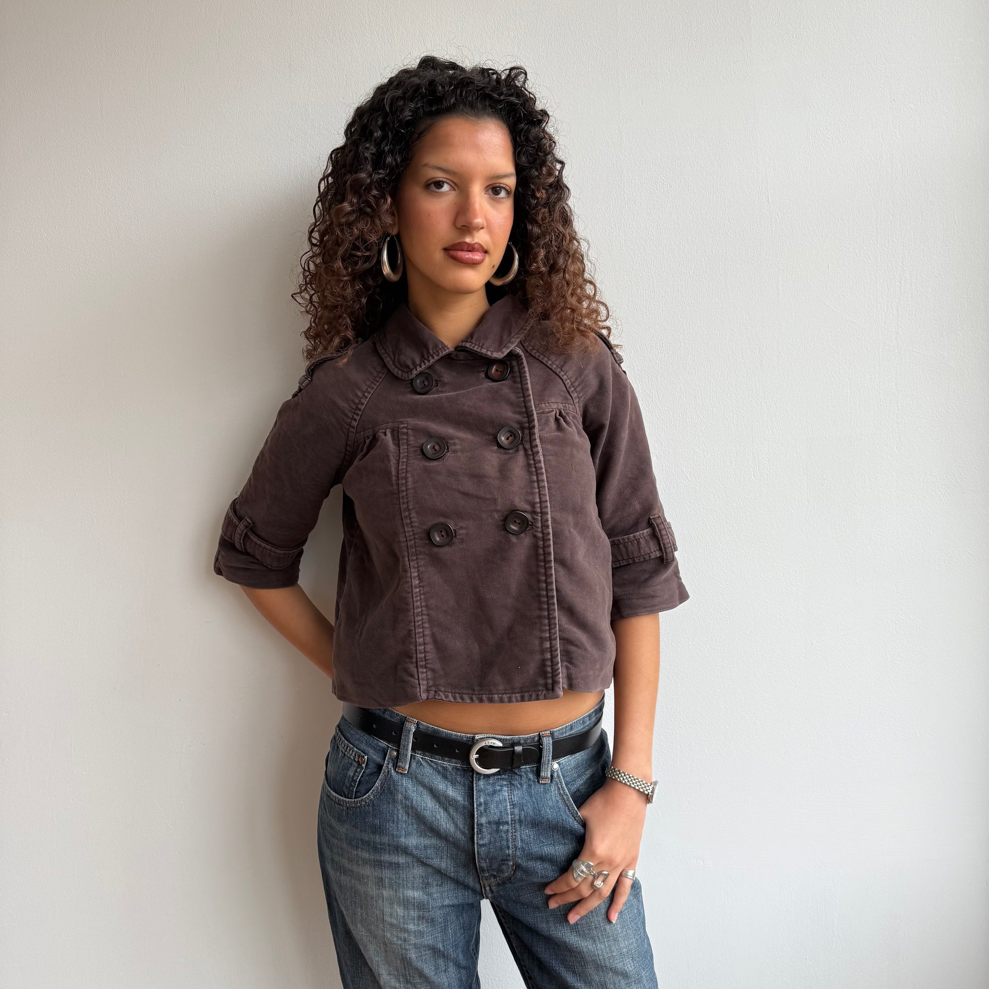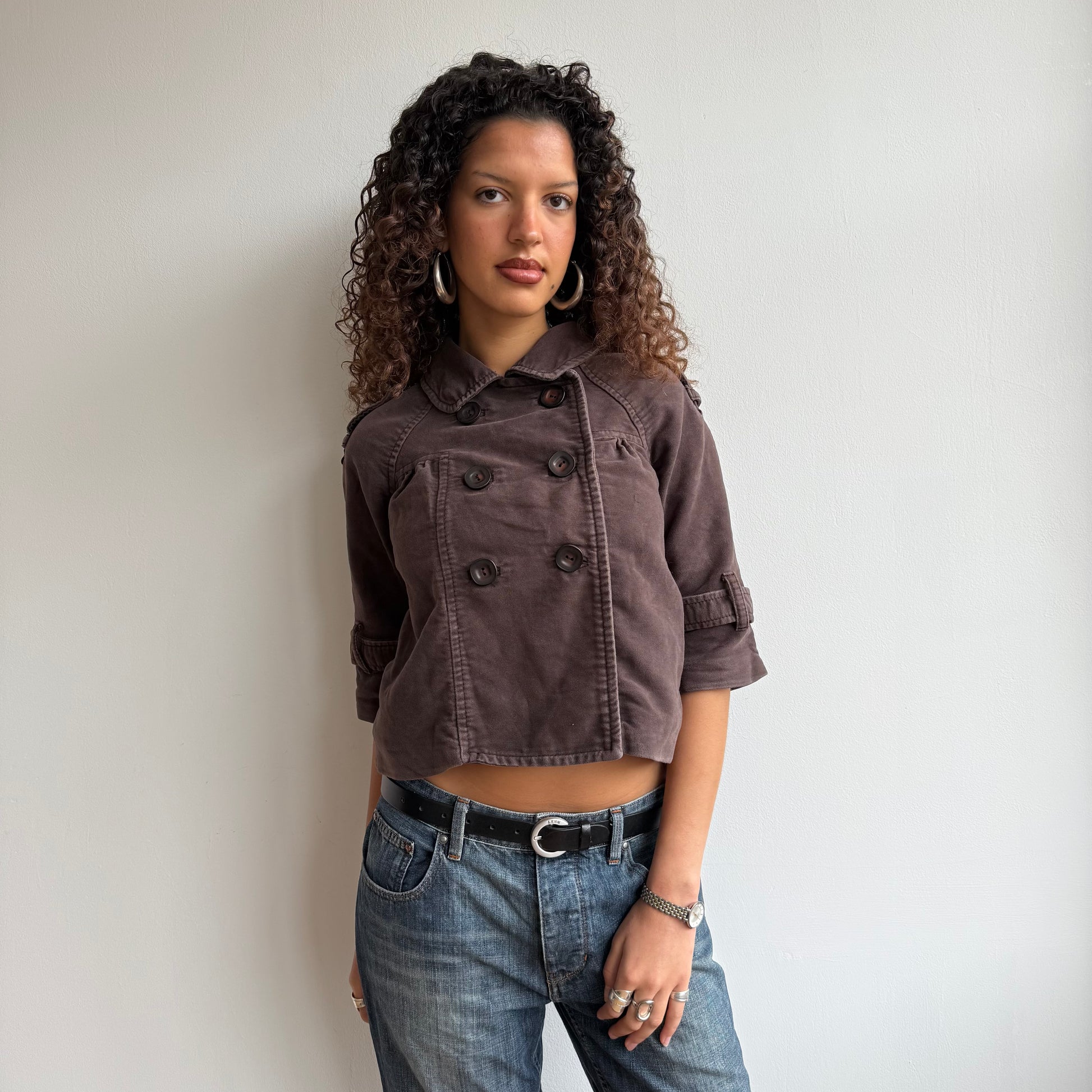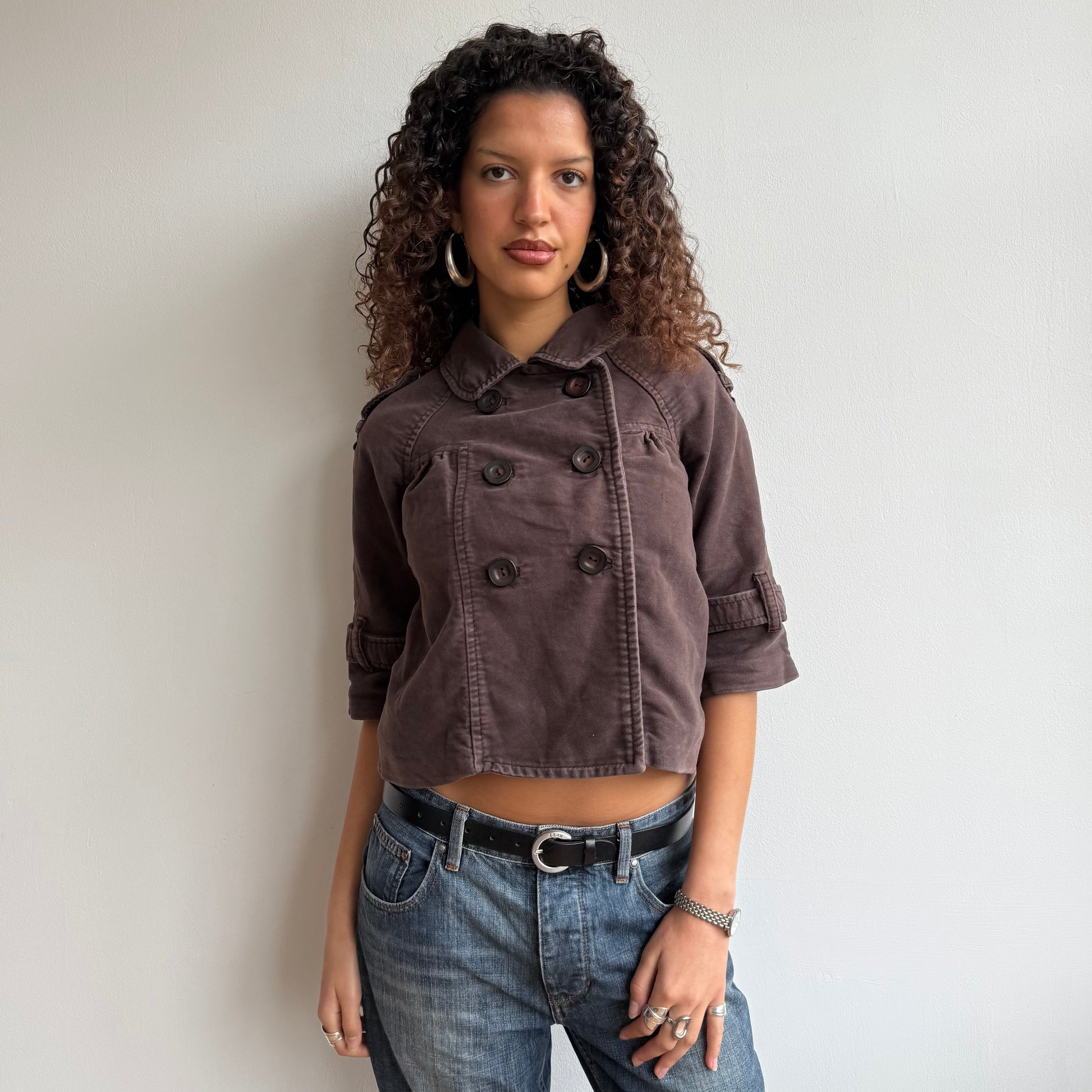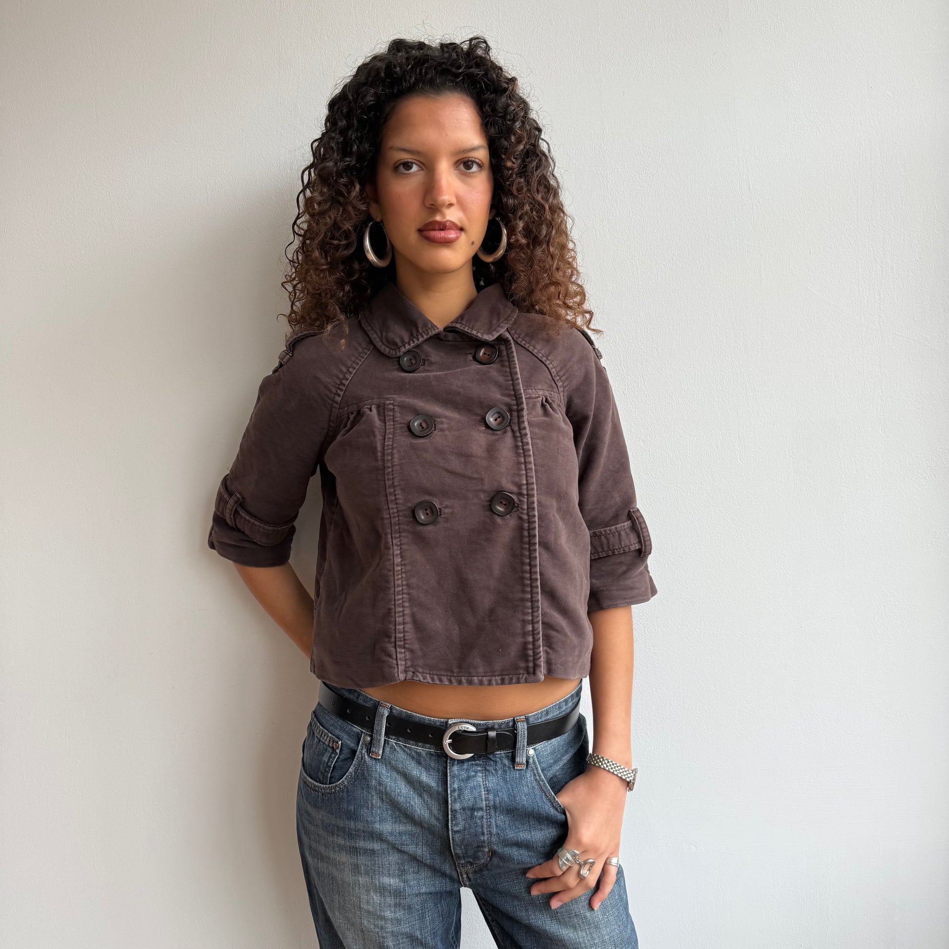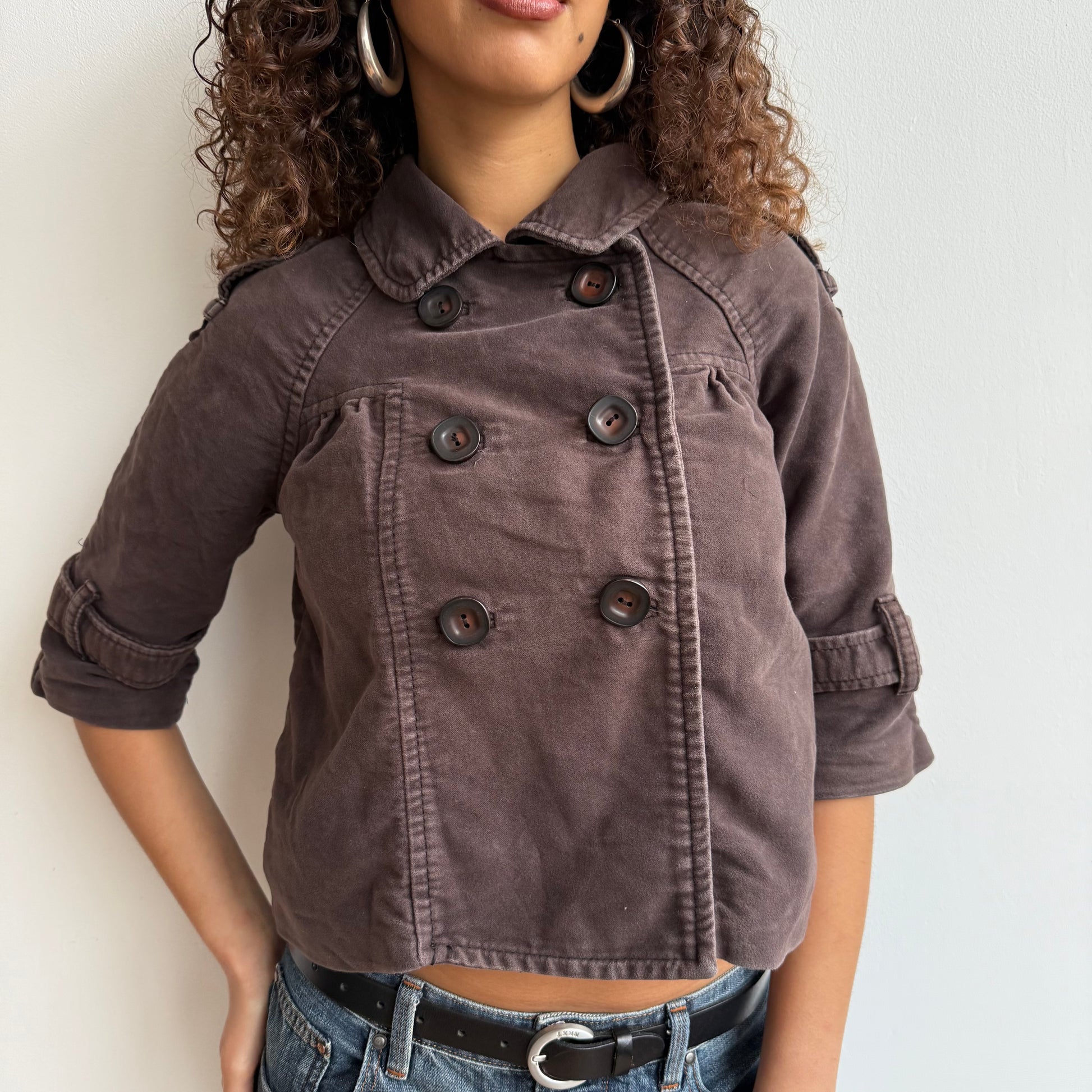 Brown velour 3/4 sleeve peacoat - Size S/M