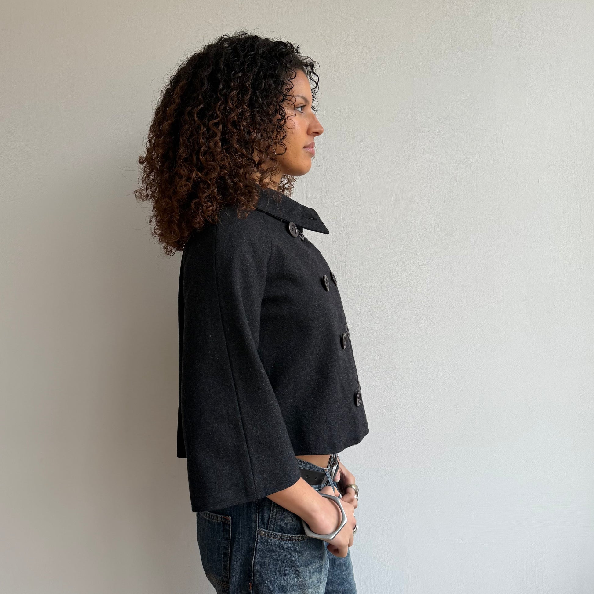 Charcoal 3/4 sleeve swing peacoat - Size S