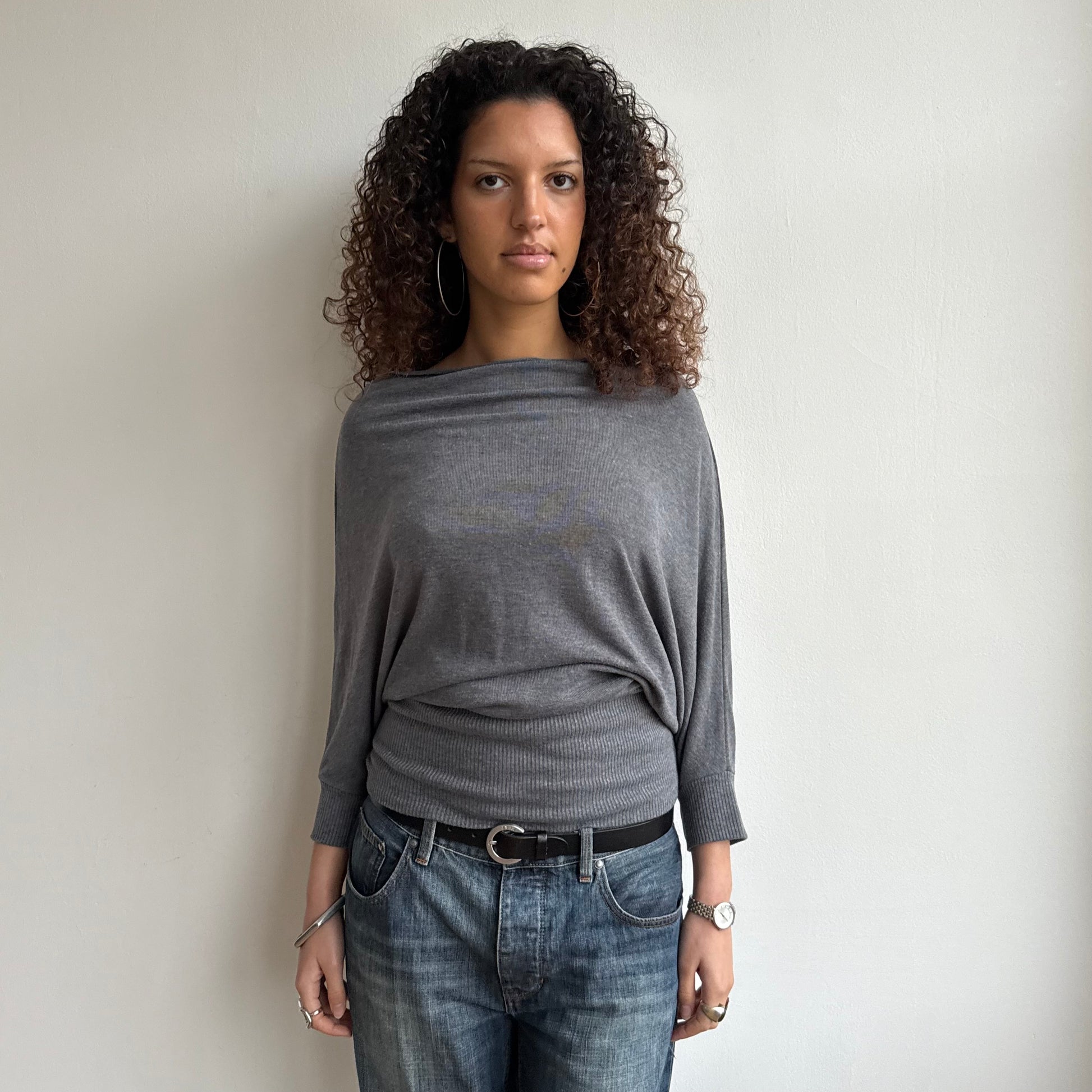 Charcoal Greg batwing slouchy knit, stretchy soft material