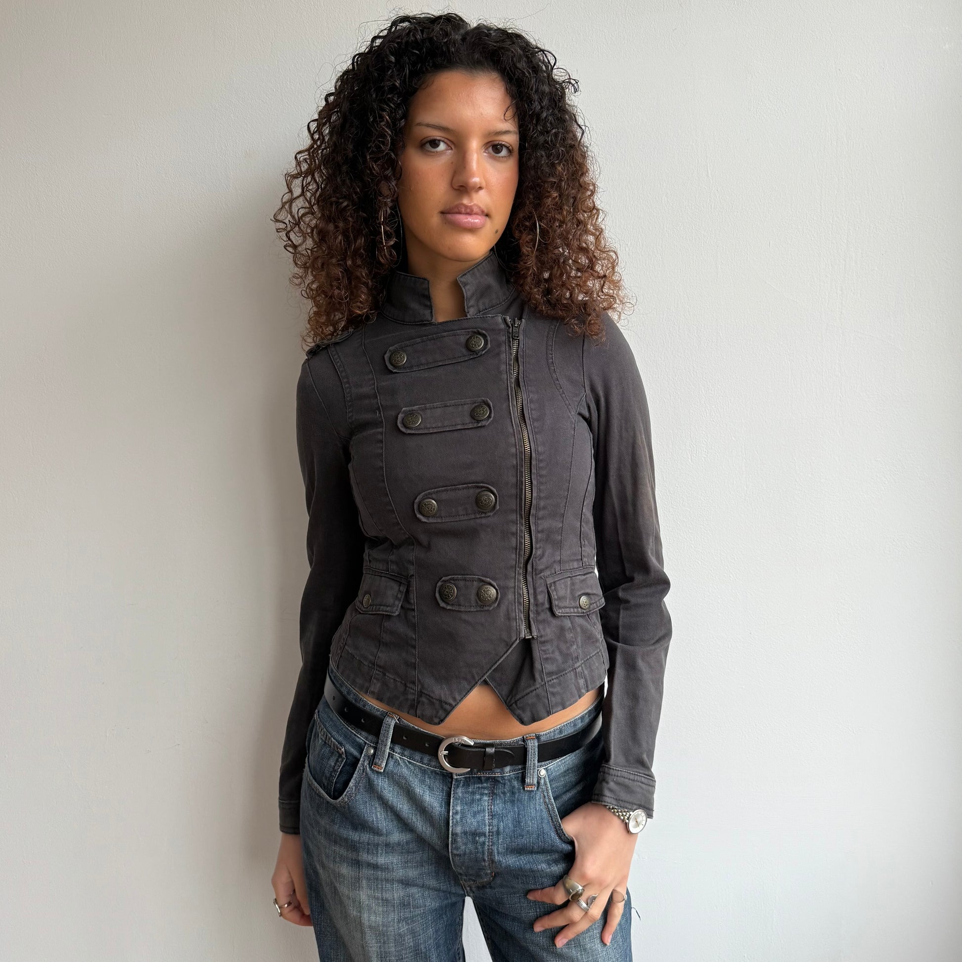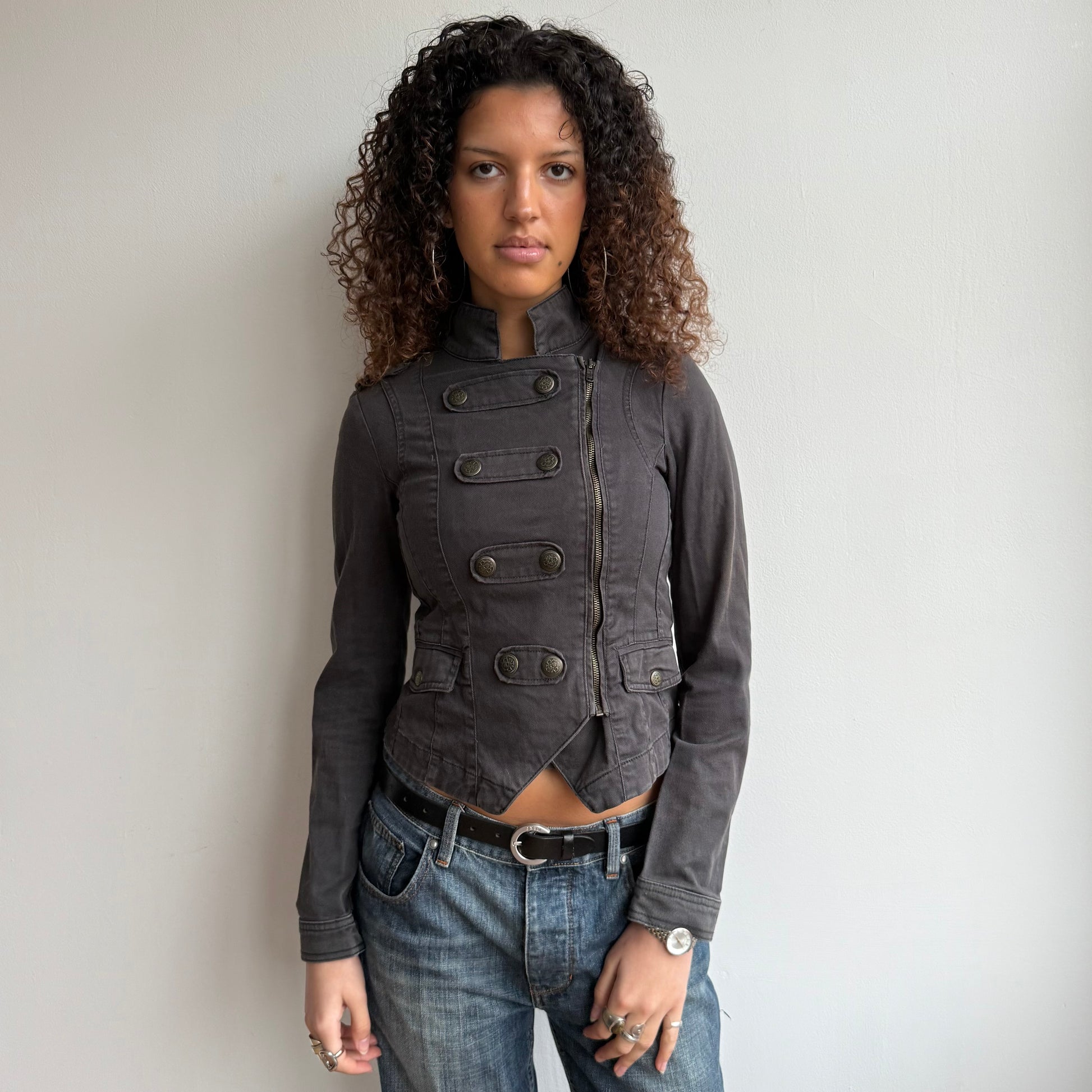 Charcoal grey zip up military jacket