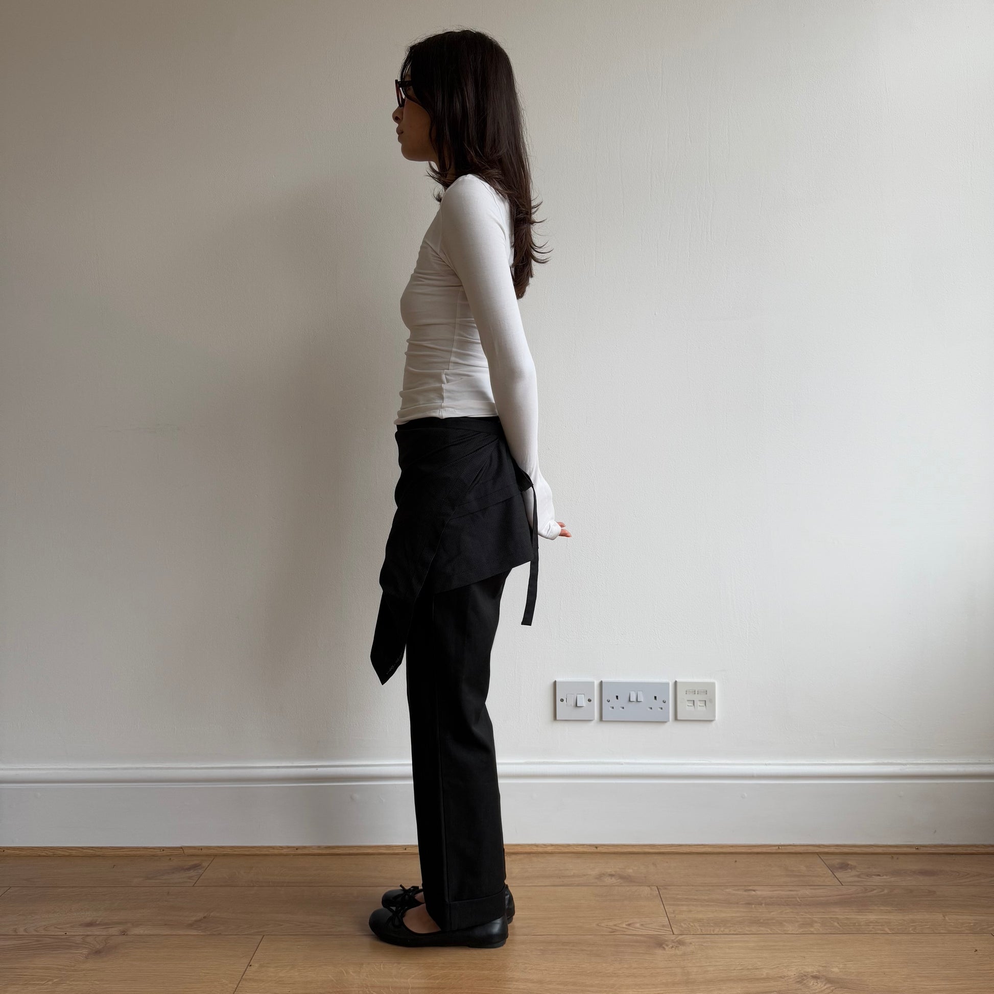 Black cop copine capris with zip front and wrap skirt which is detachable