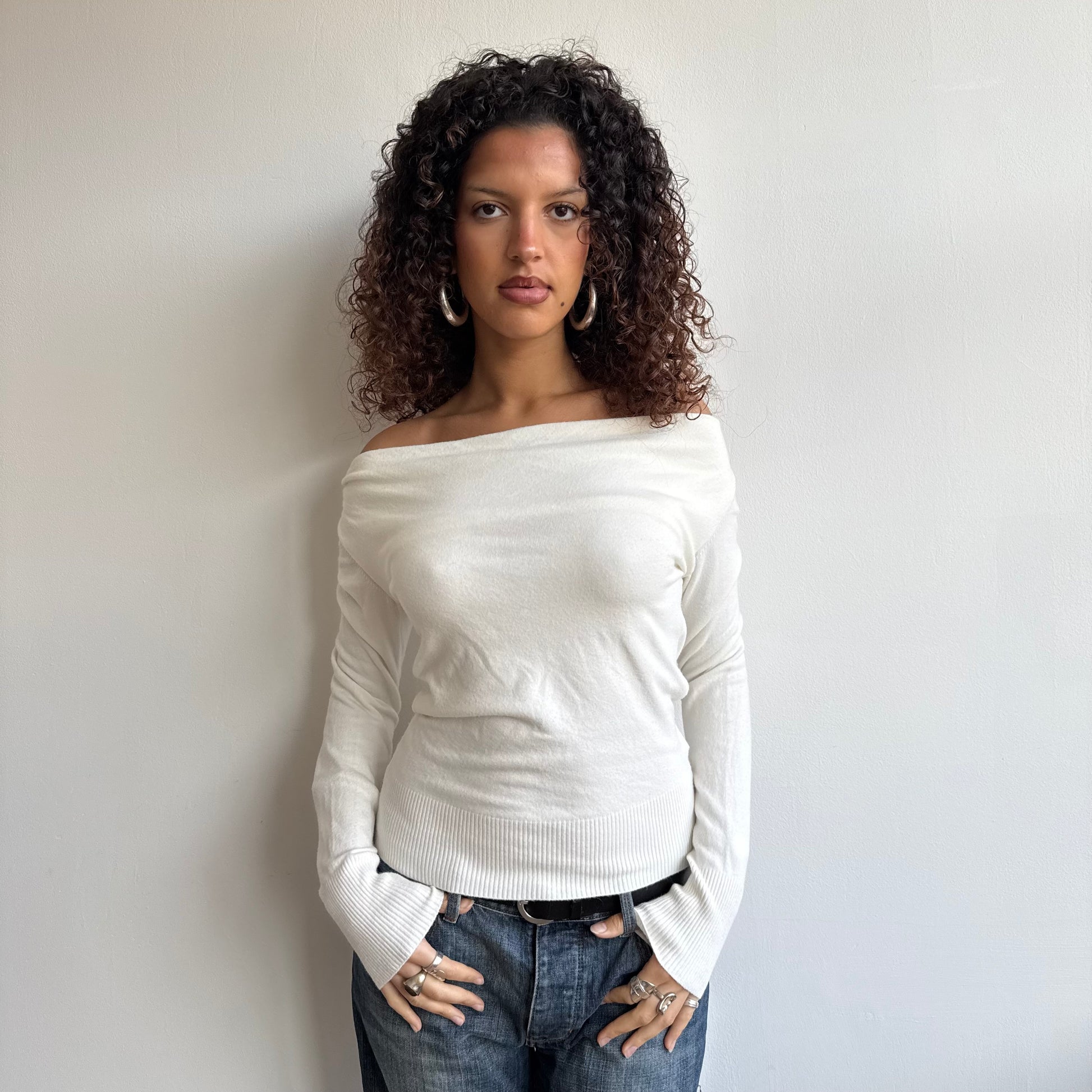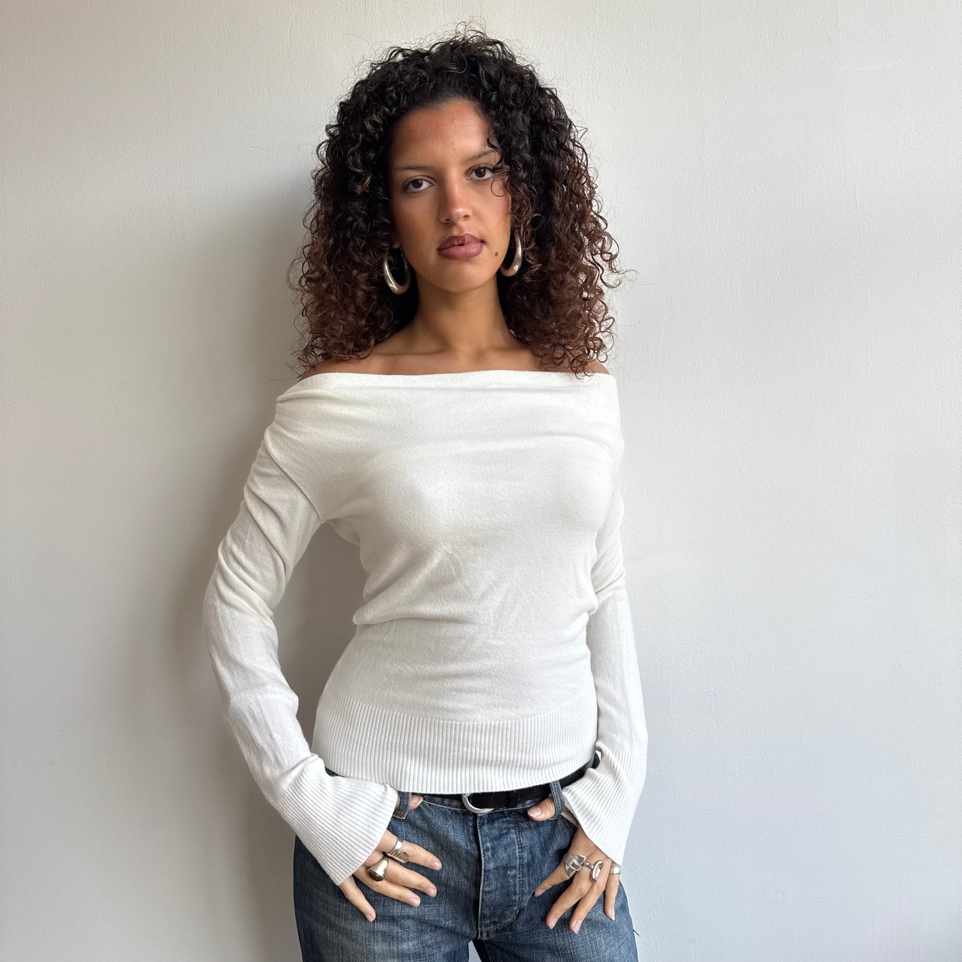 Cream / white cowl neck knit that can be worn several ways (very soft)