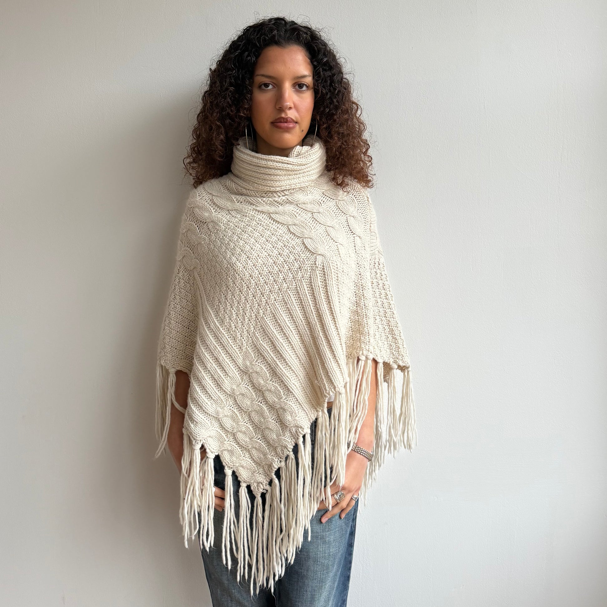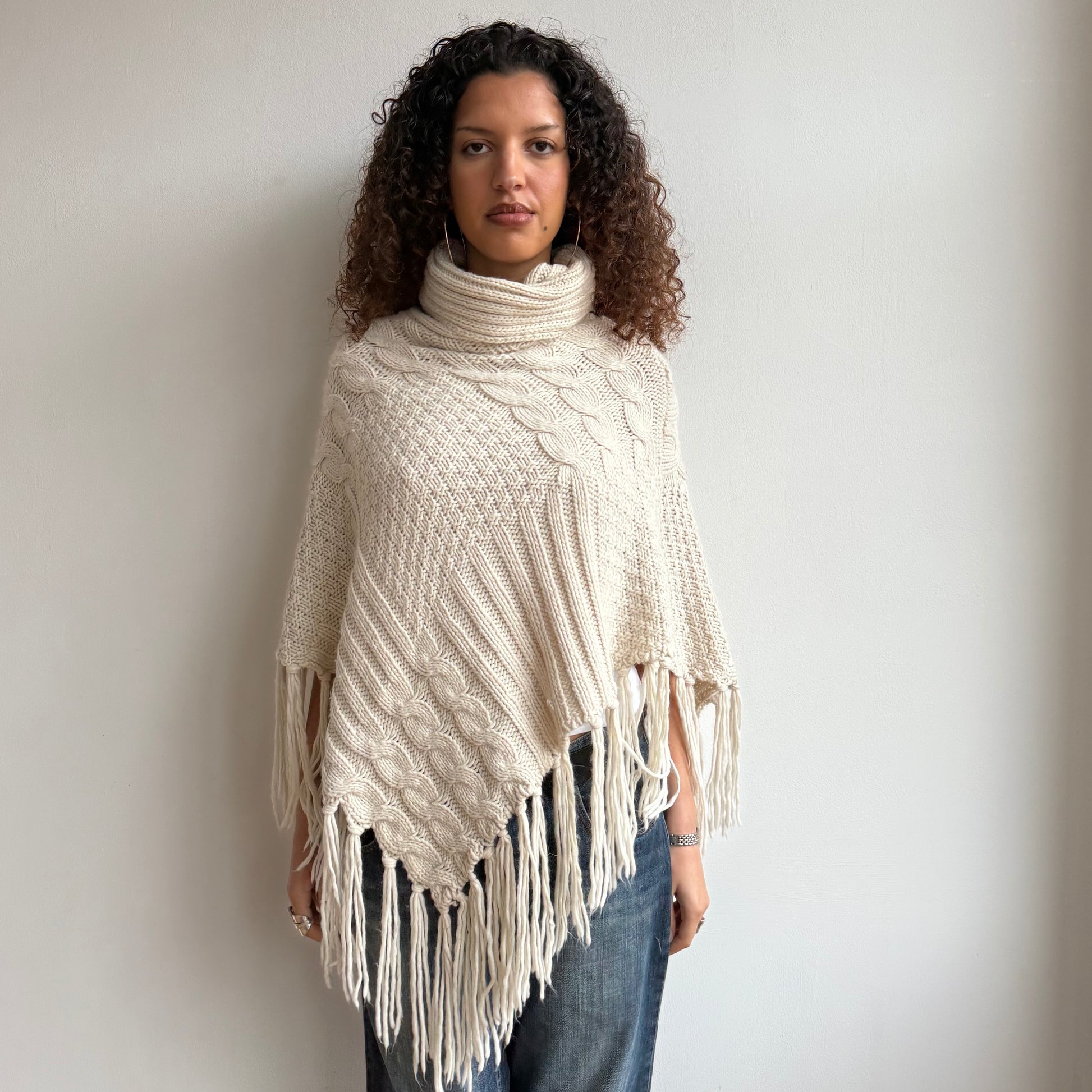 Cream tassel roll neck poncho